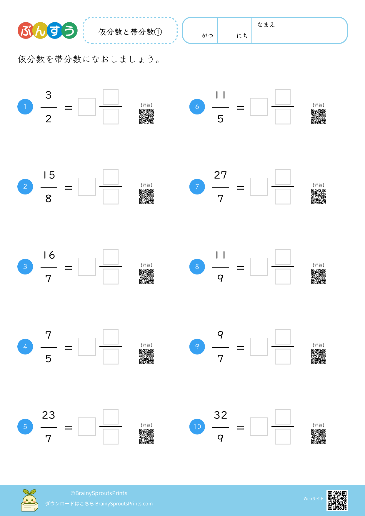 仮分数と帯分数① #5