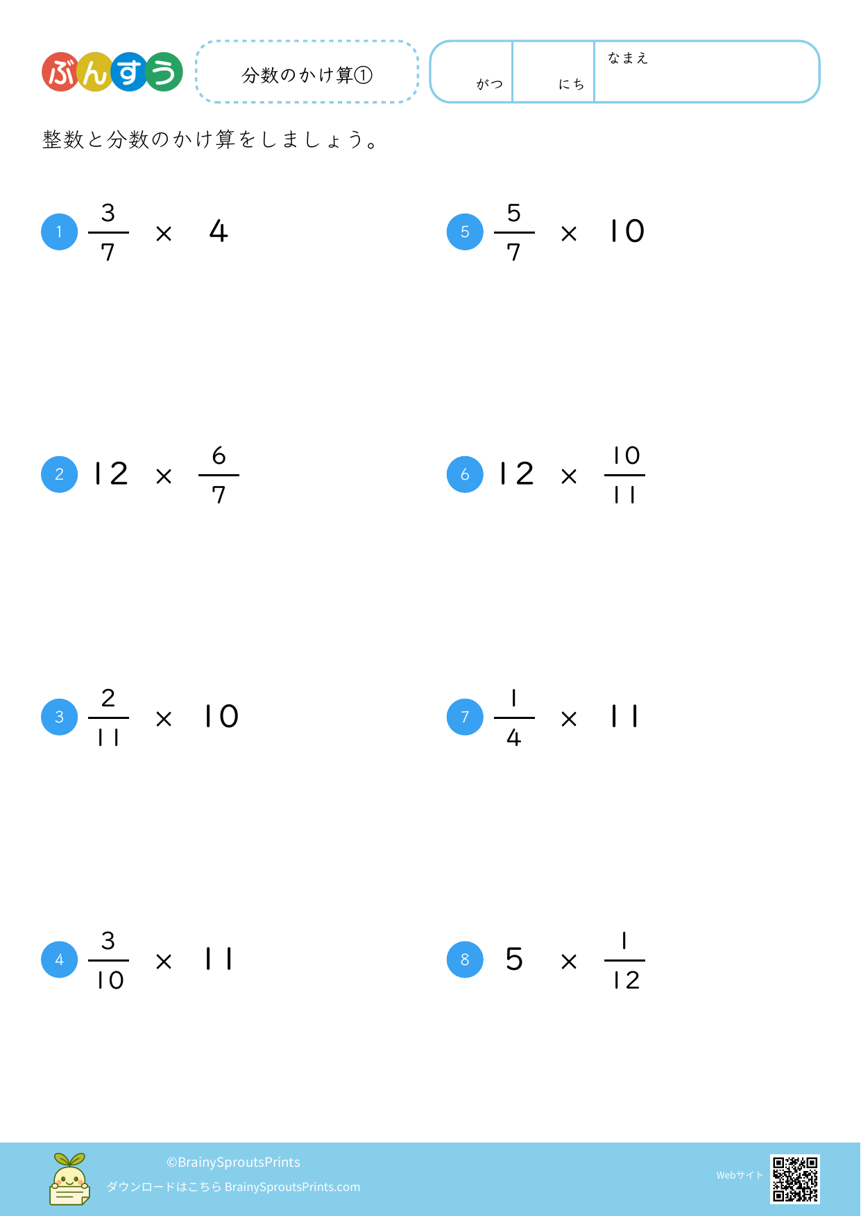 分けた大きさや数の関係を見ながら、分数の意味を整理しやすいプリントです。計算だけでなく、何を1と見るのか、どこを比べているのかを意識すると理解が深まりやすくなります。 図と式を行き来しながら使うと、分数が記号だけの学習になりにくくなります。