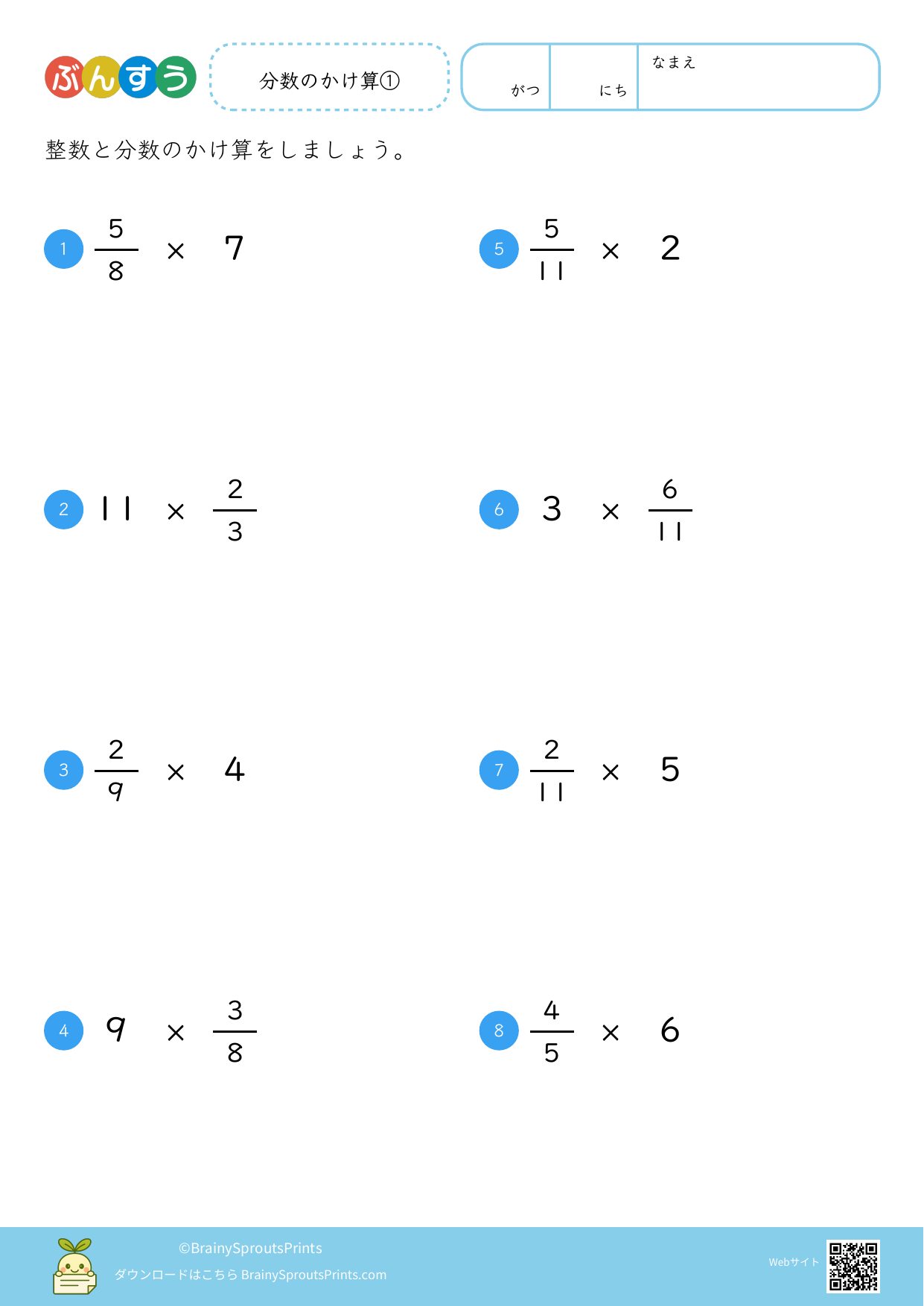 分けた大きさや数の関係を見ながら、分数の意味を整理しやすいプリントです。計算だけでなく、何を1と見るのか、どこを比べているのかを意識すると理解が深まりやすくなります。 図と式を行き来しながら使うと、分数が記号だけの学習になりにくくなります。