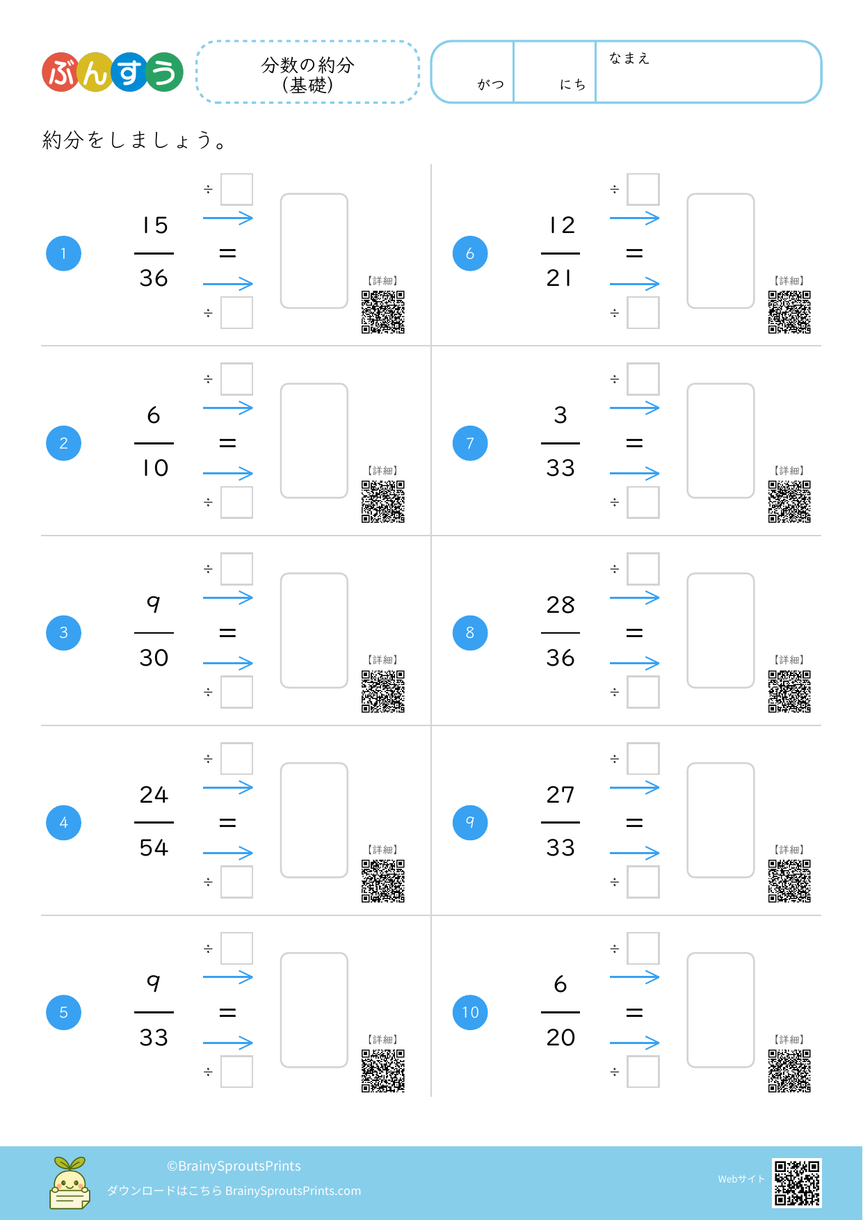 分数の約分(基礎) #2