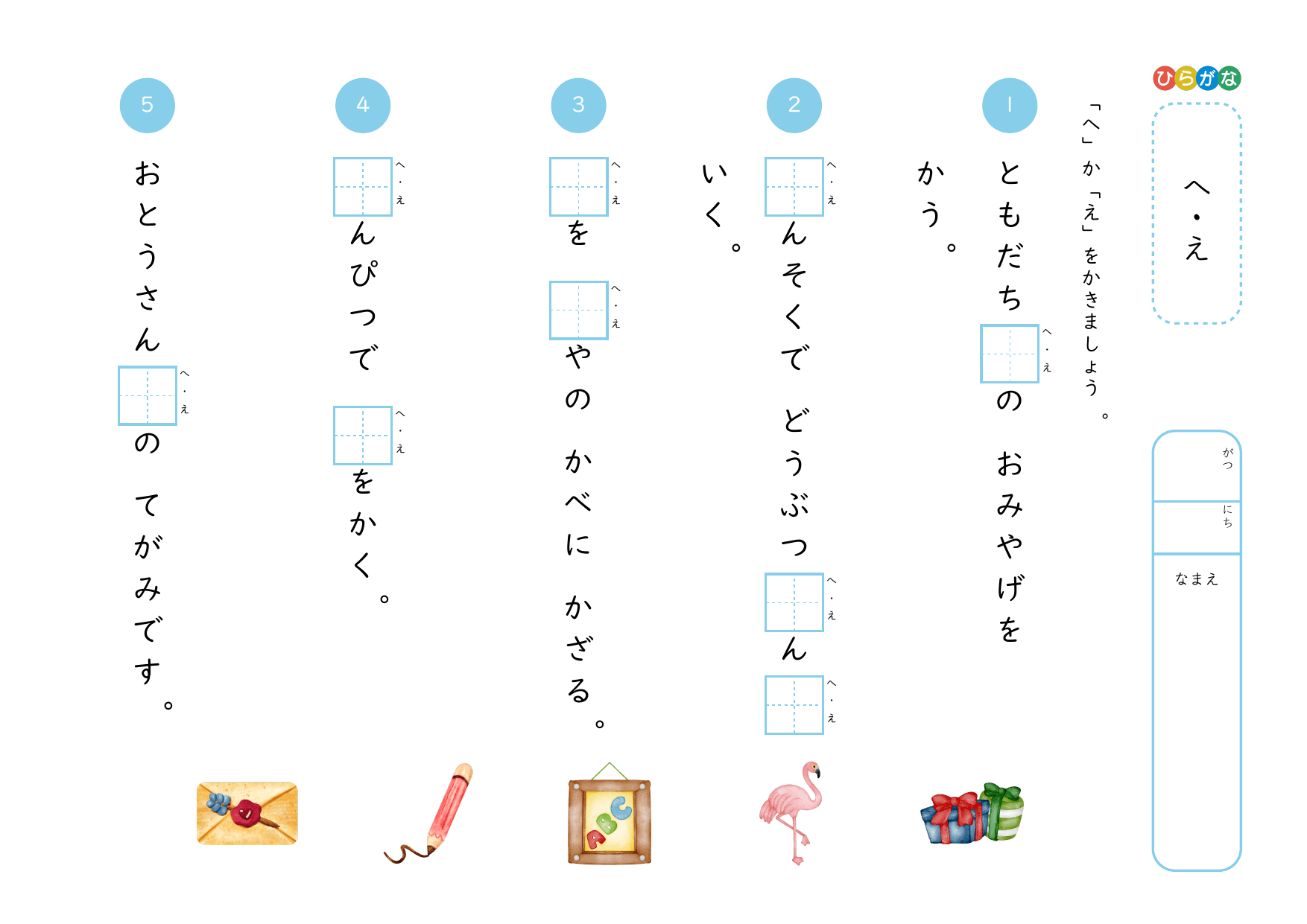 取り組んだあとは、「どの文字が言いやすかった?」「どこが少し難しかった?」と短く振り返ると、次に見直したいポイントが見えやすくなります。 プリントだけで終わらせず、絵本や看板、身の回りの言葉の中で同じ文字を探してみると、学んだことが生活の中につながりやすくなります。