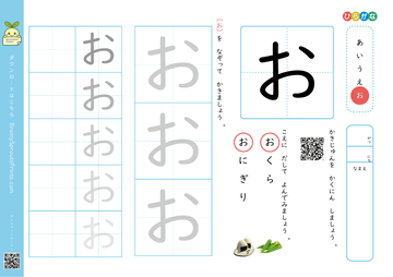 一文字ずつ形と音を結びつけながら、ひらがなの土台を整えやすいプリントです。まだ書くことに負担がある時期でも、少量ずつ進めやすいのが特長です。 形が整ったかだけでなく、見本を見ながら迷わず書き始められるかを見ると、定着の段階がつかみやすくなります。