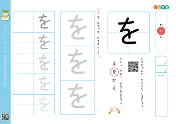 一文字ずつ形と音を結びつけながら、ひらがなの土台を整えやすいプリントです。まだ書くことに負担がある時期でも、少量ずつ進めやすいのが特長です。 形が整ったかだけでなく、見本を見ながら迷わず書き始められるかを見ると、定着の段階がつかみやすくなります。