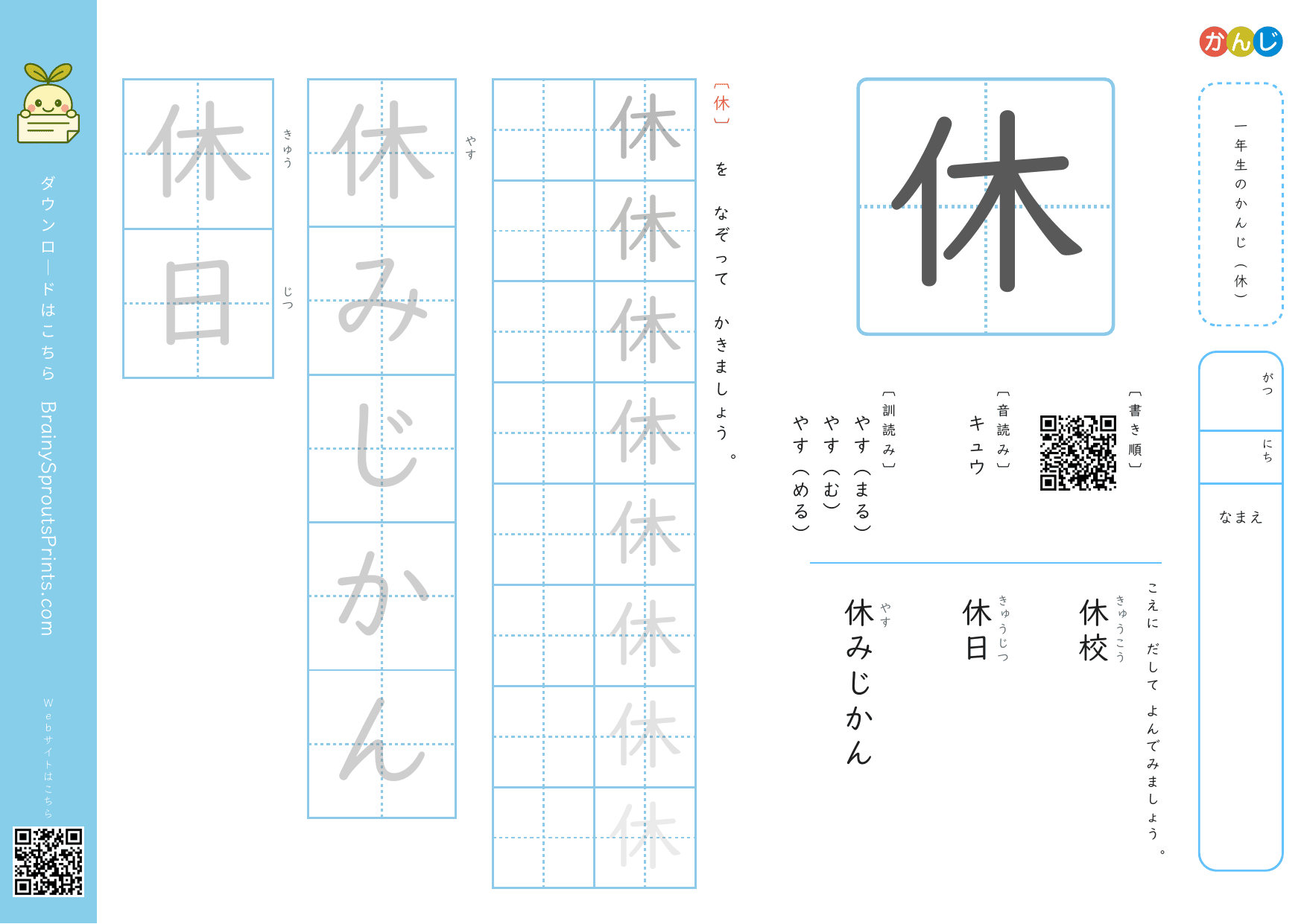 一年生の漢字 (休)