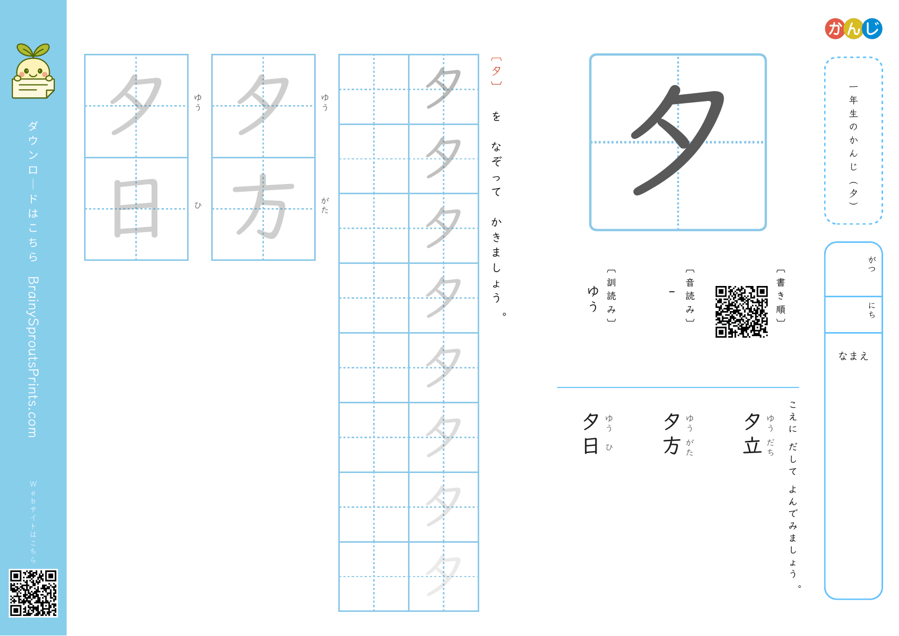 一年生の漢字 (夕)