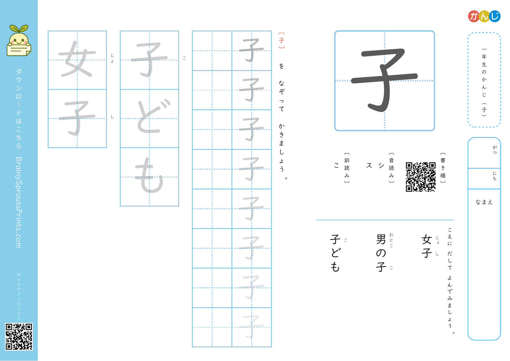 一年生の漢字 (子)
