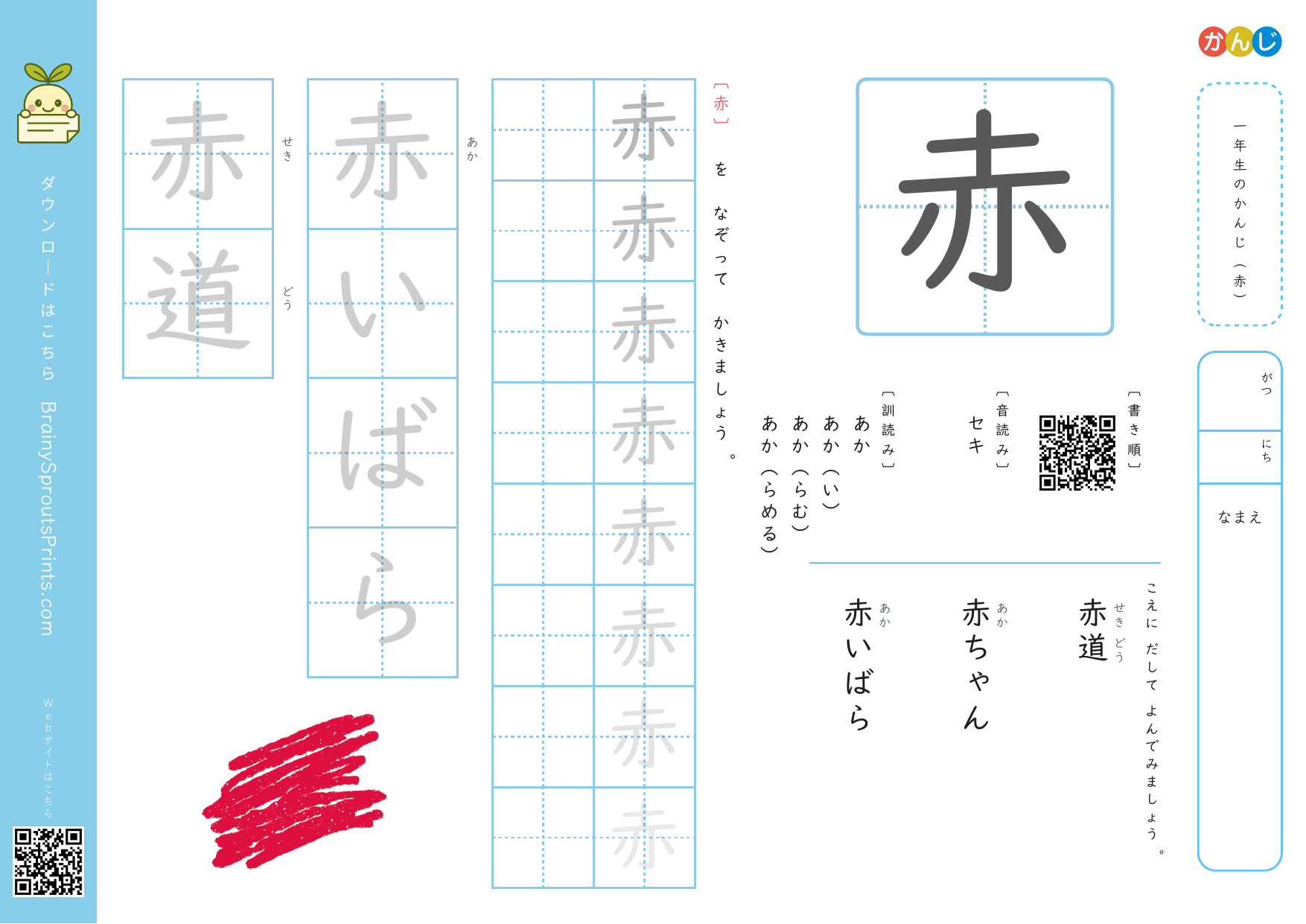 一年生の漢字 (赤)