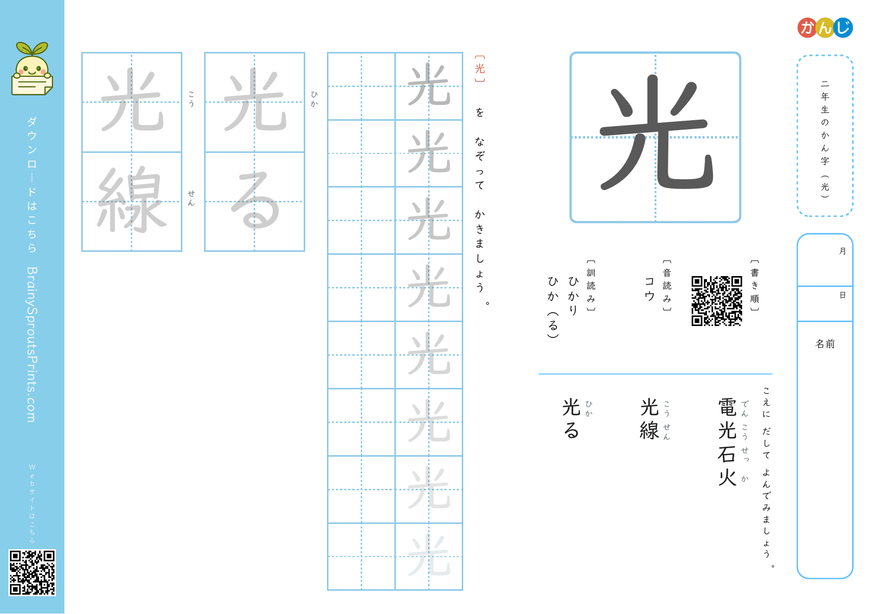 二年生の漢字 (光)