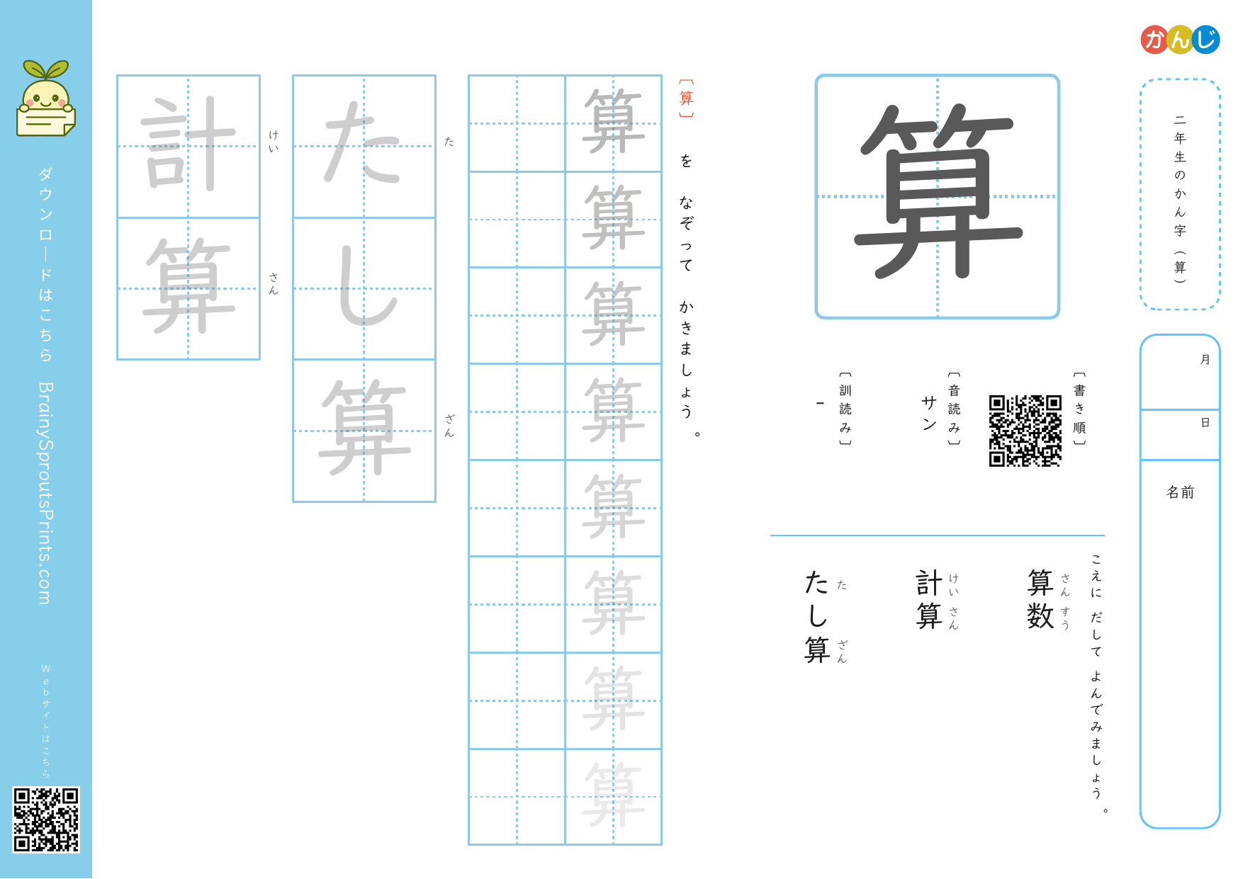 二年生の漢字 (算)