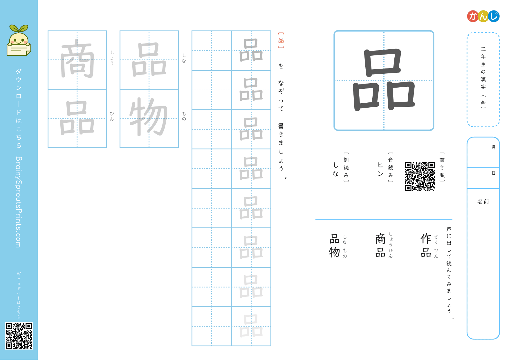 三年生の漢字 (品)