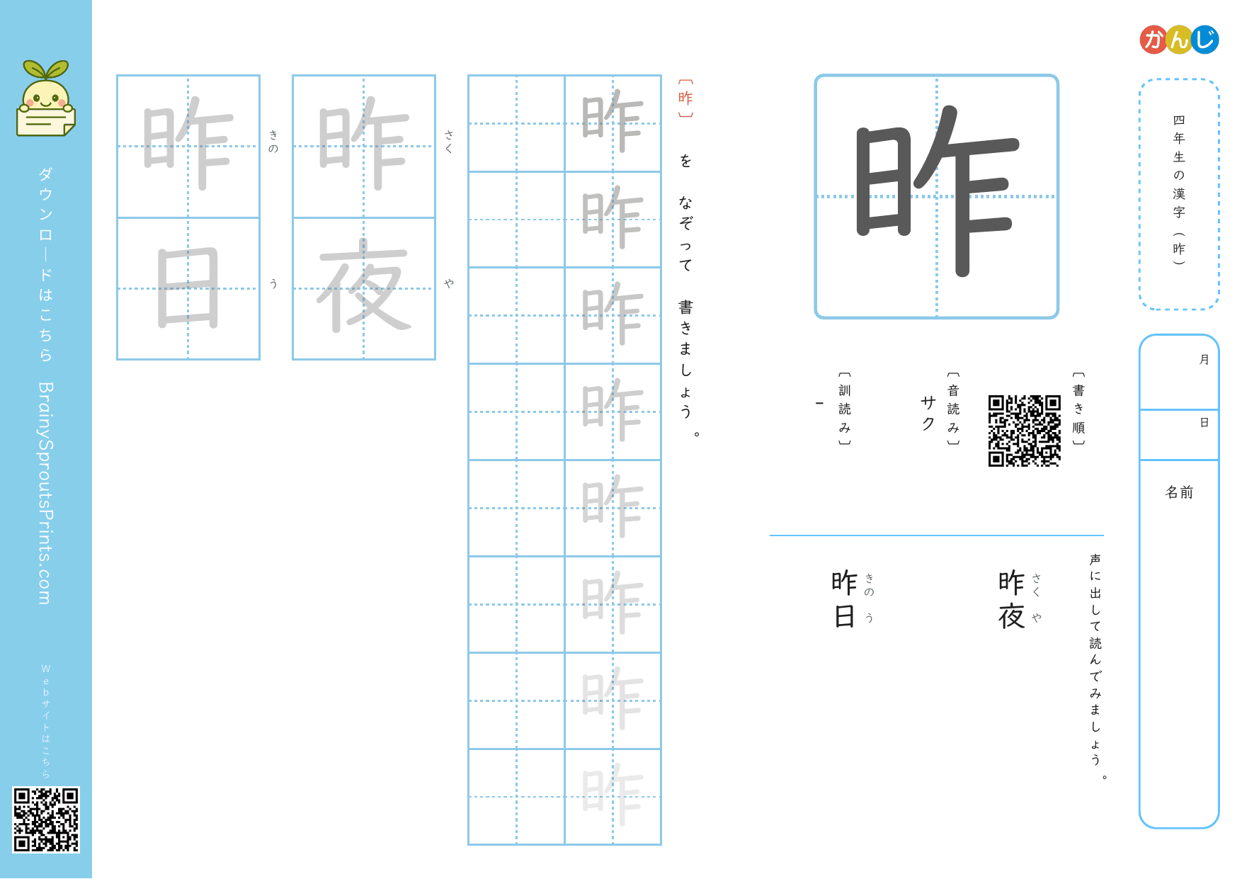 四年生の漢字 (昨)