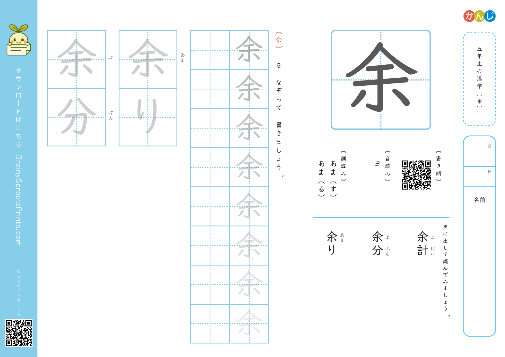 五年生の漢字 (余)