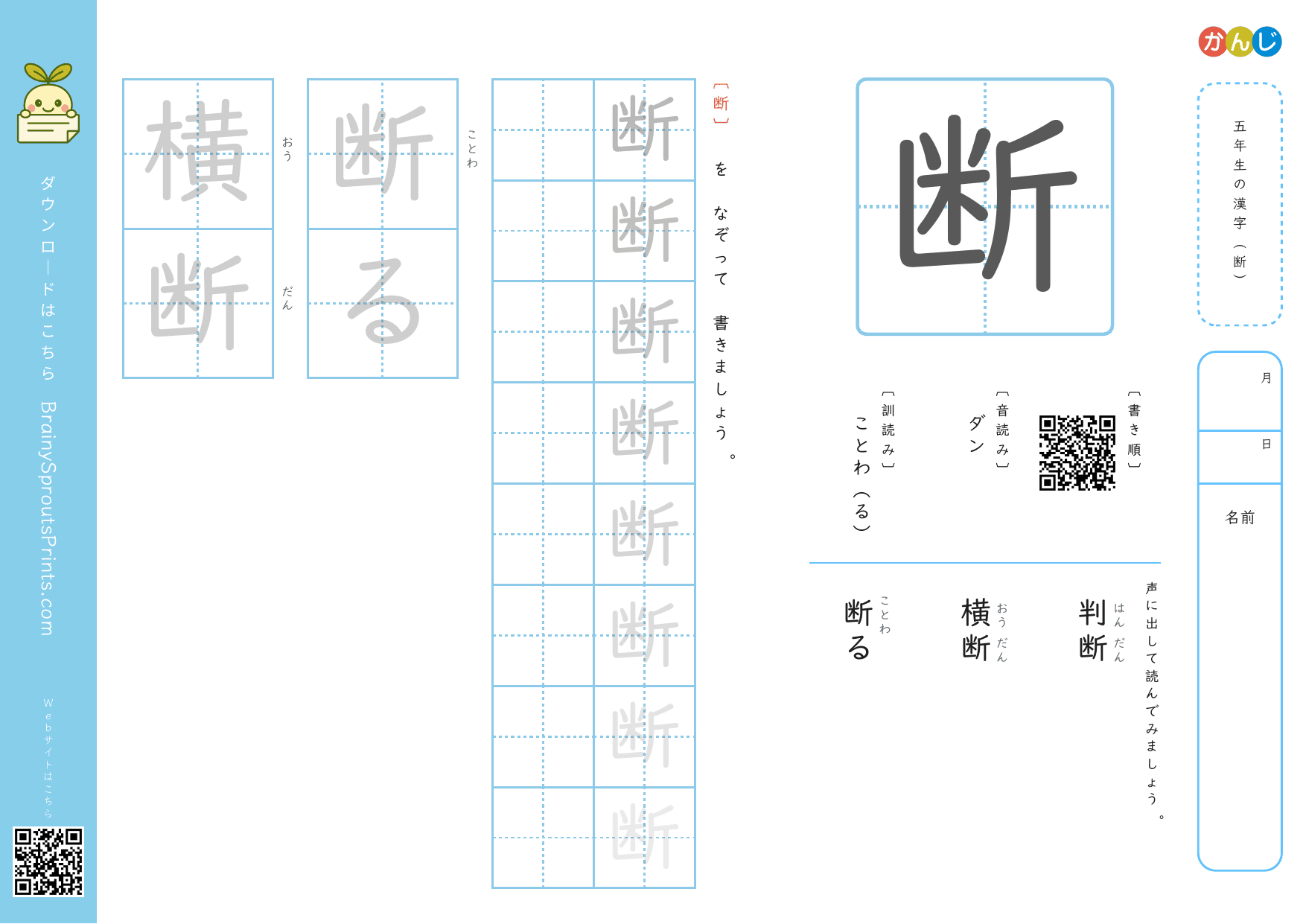 五年生の漢字 (断)