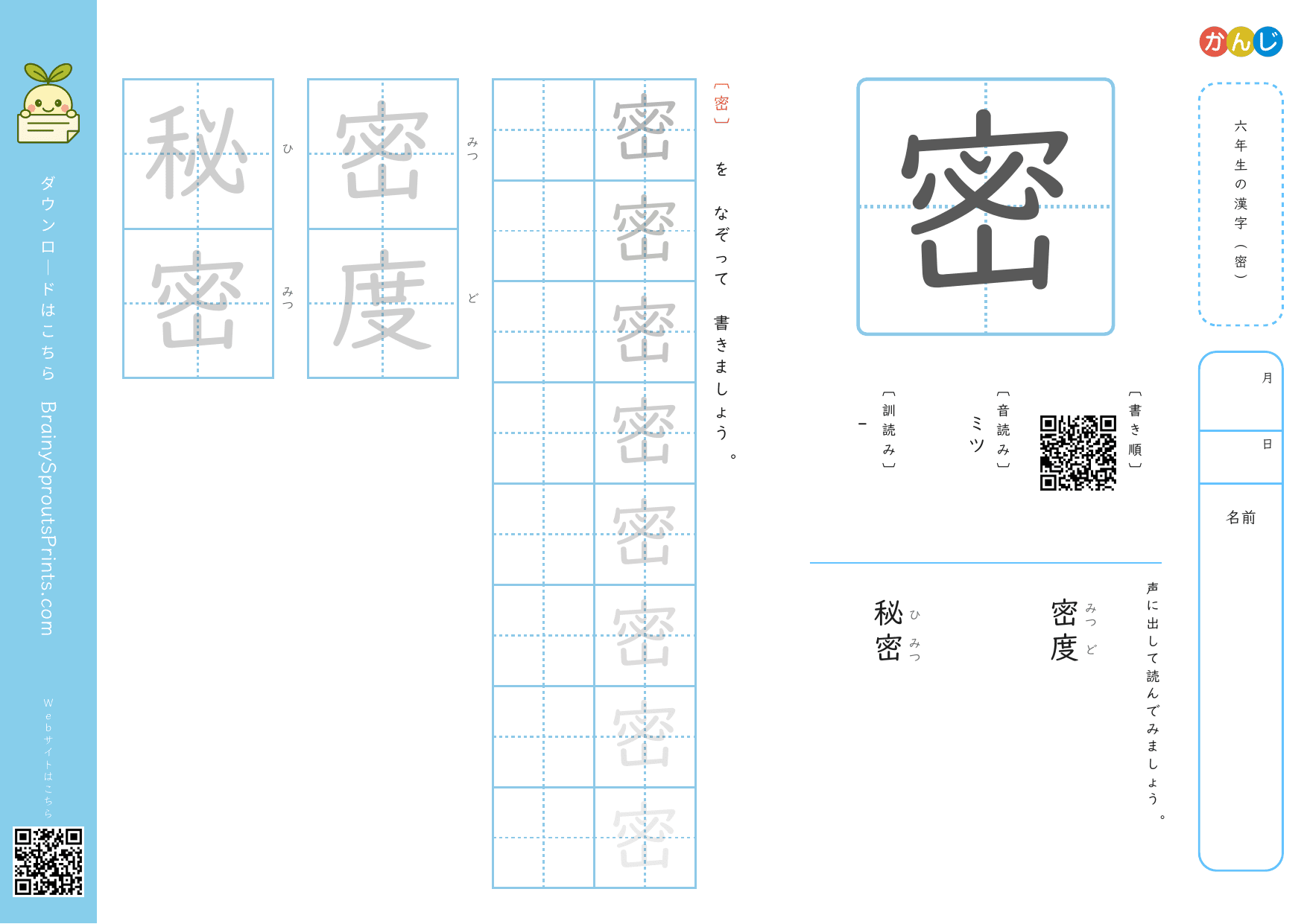 六年生の漢字 (密)