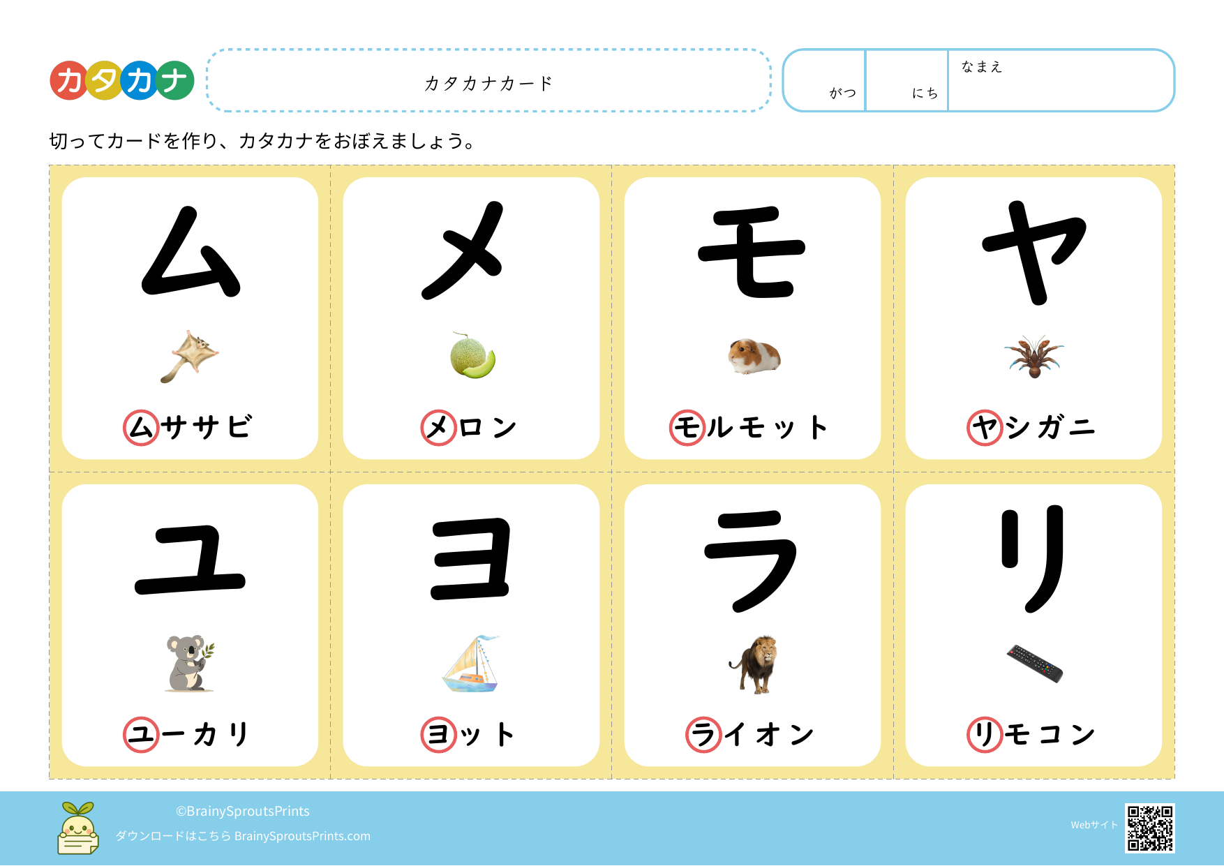 取り組んだあとは、「どの文字が言いやすかった?」「どこが少し難しかった?」と短く振り返ると、次に見直したいポイントが見えやすくなります。 プリントだけで終わらせず、絵本や看板、身の回りの言葉の中で同じ文字を探してみると、学んだことが生活の中につながりやすくなります。