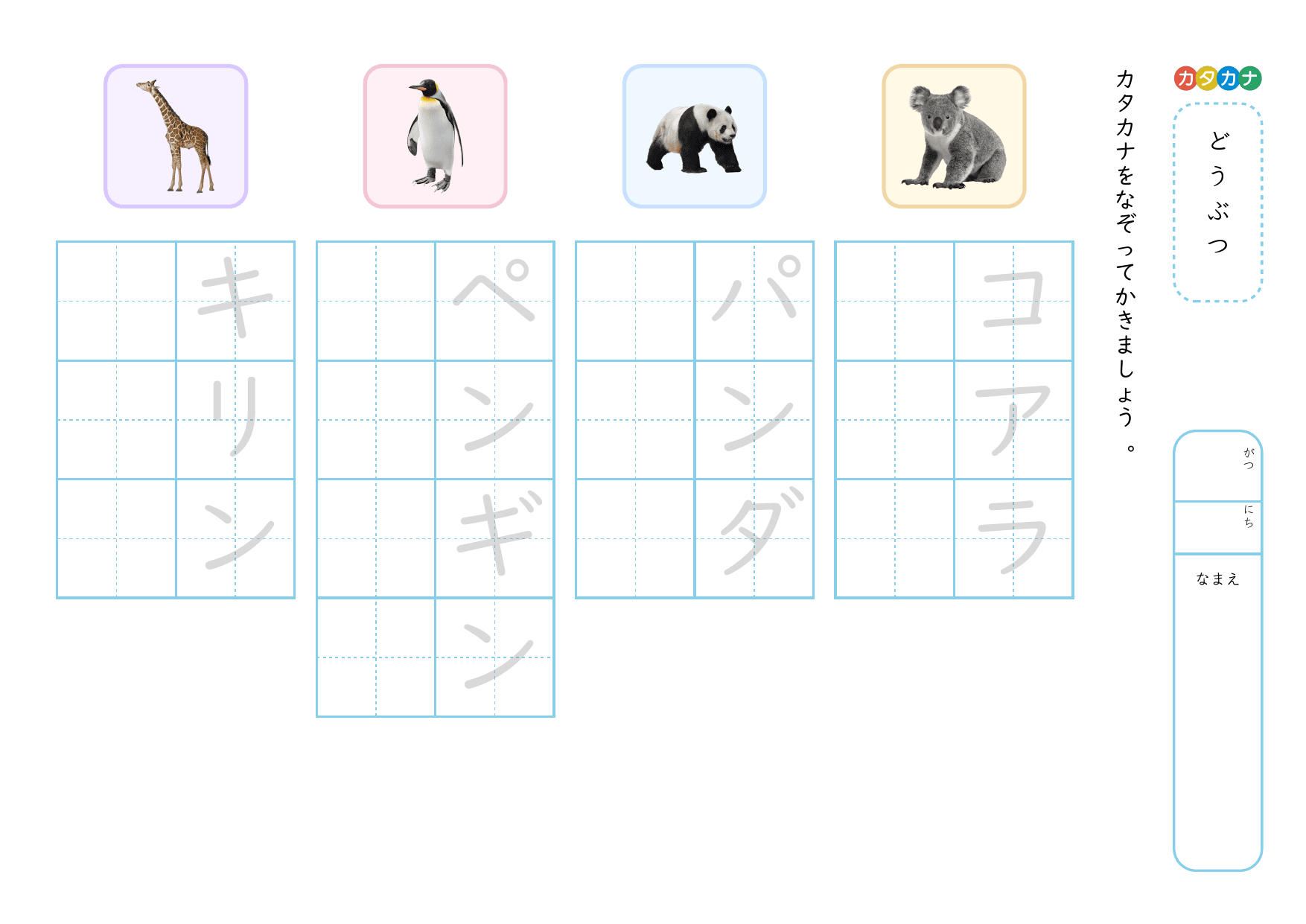 取り組んだあとは、「どの文字が言いやすかった?」「どこが少し難しかった?」と短く振り返ると、次に見直したいポイントが見えやすくなります。 プリントだけで終わらせず、絵本や看板、身の回りの言葉の中で同じ文字を探してみると、学んだことが生活の中につながりやすくなります。