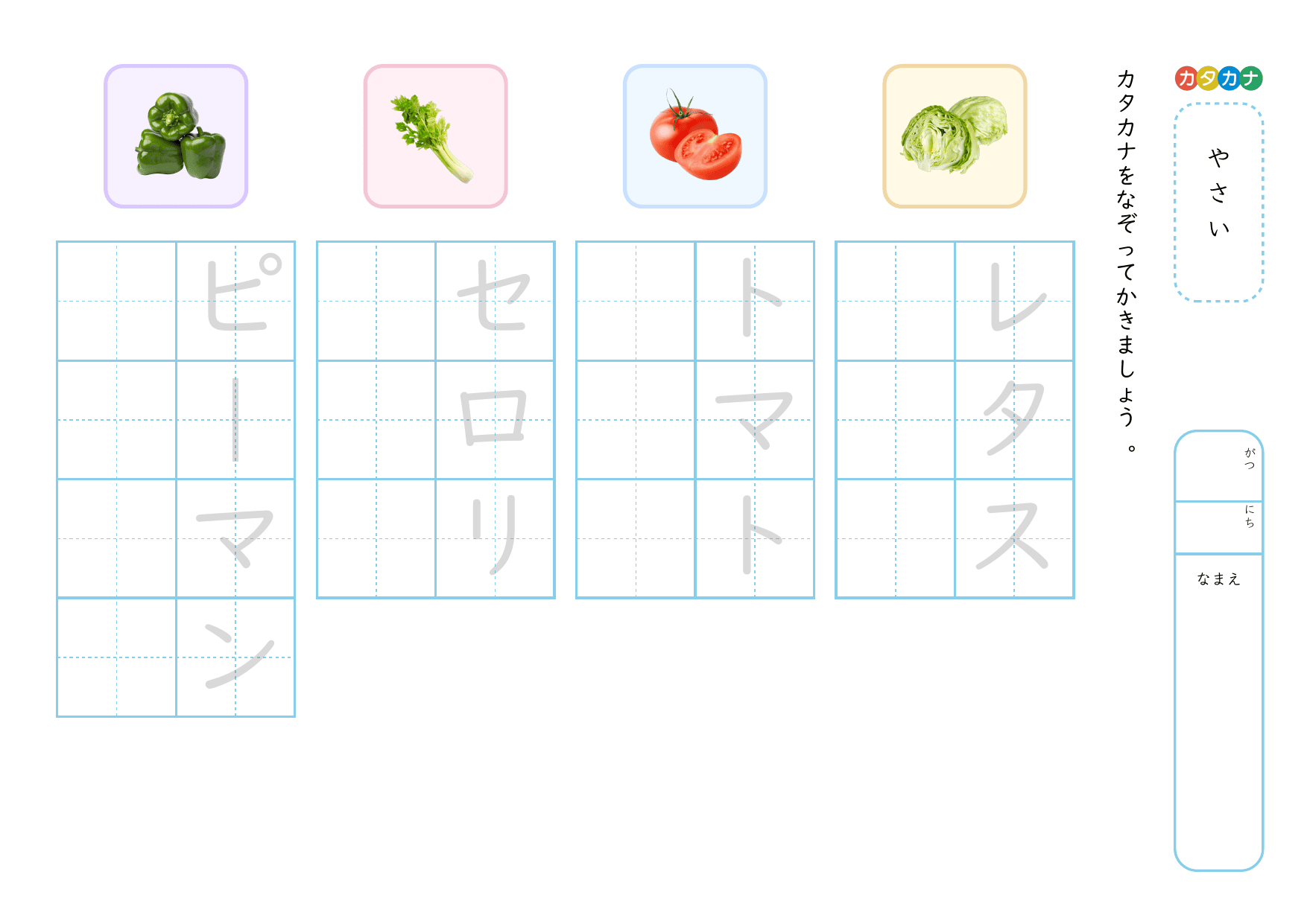 取り組んだあとは、「どの文字が言いやすかった?」「どこが少し難しかった?」と短く振り返ると、次に見直したいポイントが見えやすくなります。 プリントだけで終わらせず、絵本や看板、身の回りの言葉の中で同じ文字を探してみると、学んだことが生活の中につながりやすくなります。