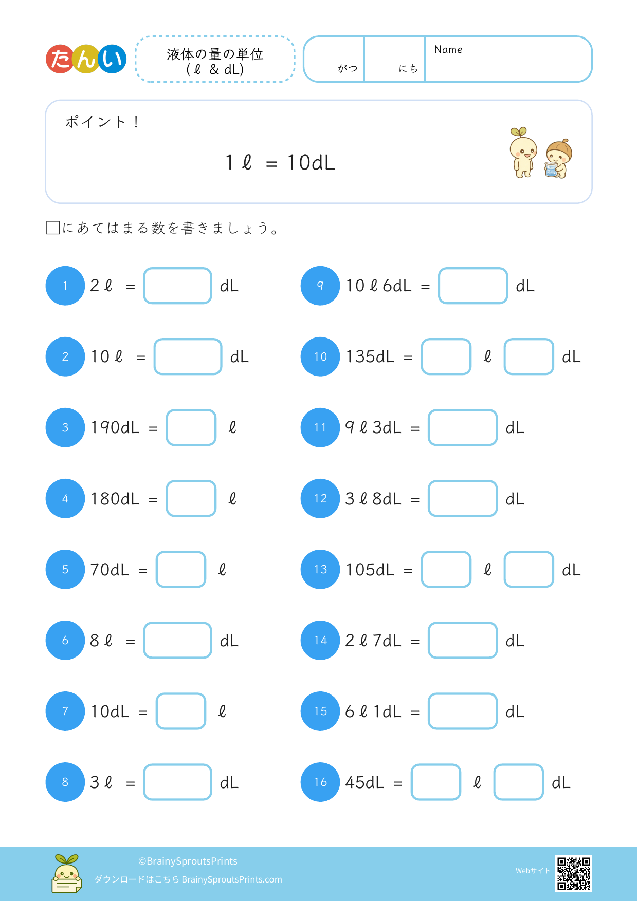液体の量の単位 (ℓ & dL) #3