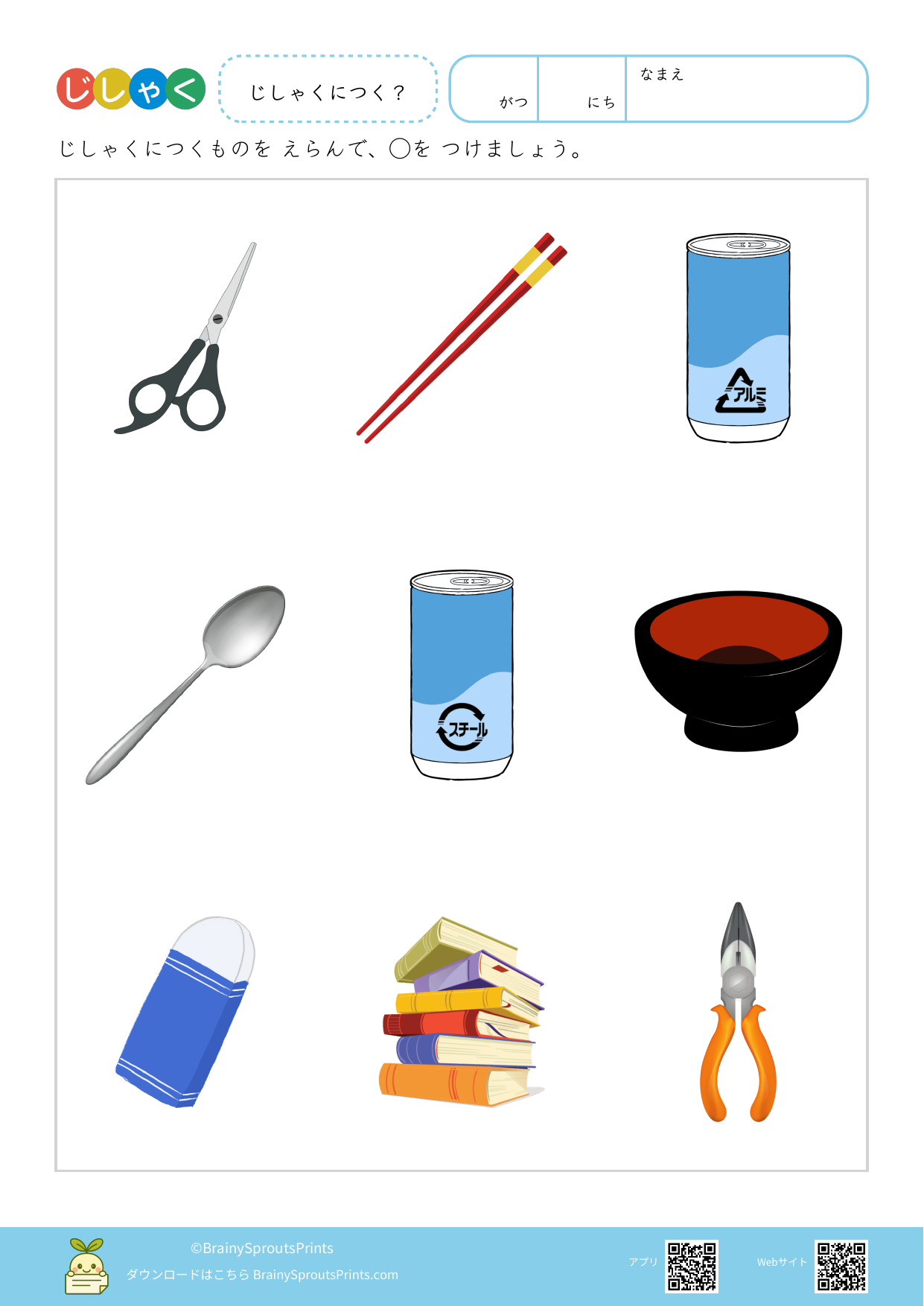 本サイトのプリントは、年齢や発達段階に応じて、保護者の方が子どもの様子を見ながら声かけやサポートを行うことを前提に作成されています。必ずしも正解を出すことを目的とせず、「考える」「言葉にする」「親子で会話する」きっかけとしてご活用ください。