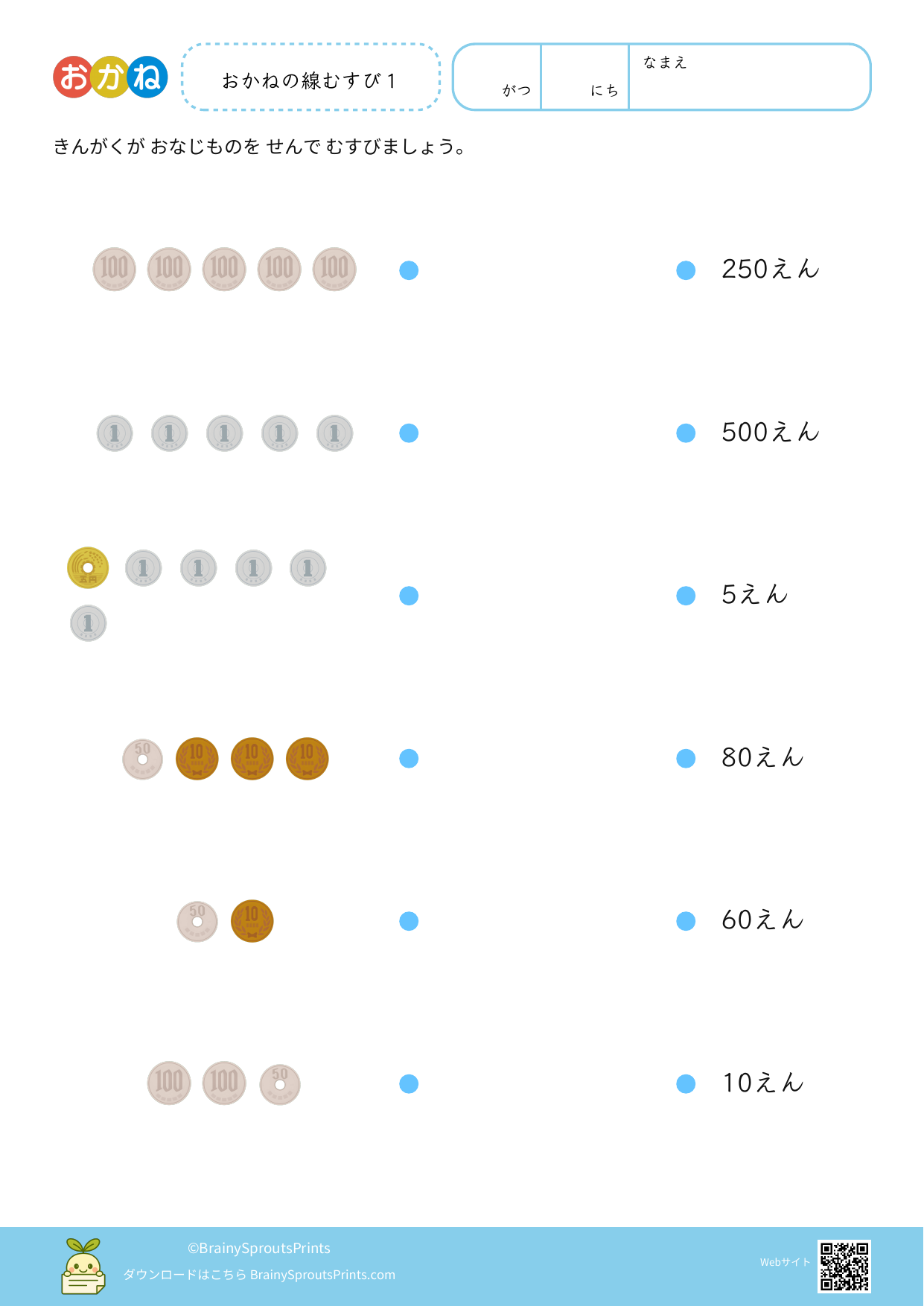 取り組んだあとは、「ほかの出し方はあるかな?」「どの硬貨ならわかりやすい?」と聞くと、金額の捉え方を整理しやすくなります。 買い物ごっこや小銭の確認と組み合わせると、数の比較や金額感覚がより具体的になります。
