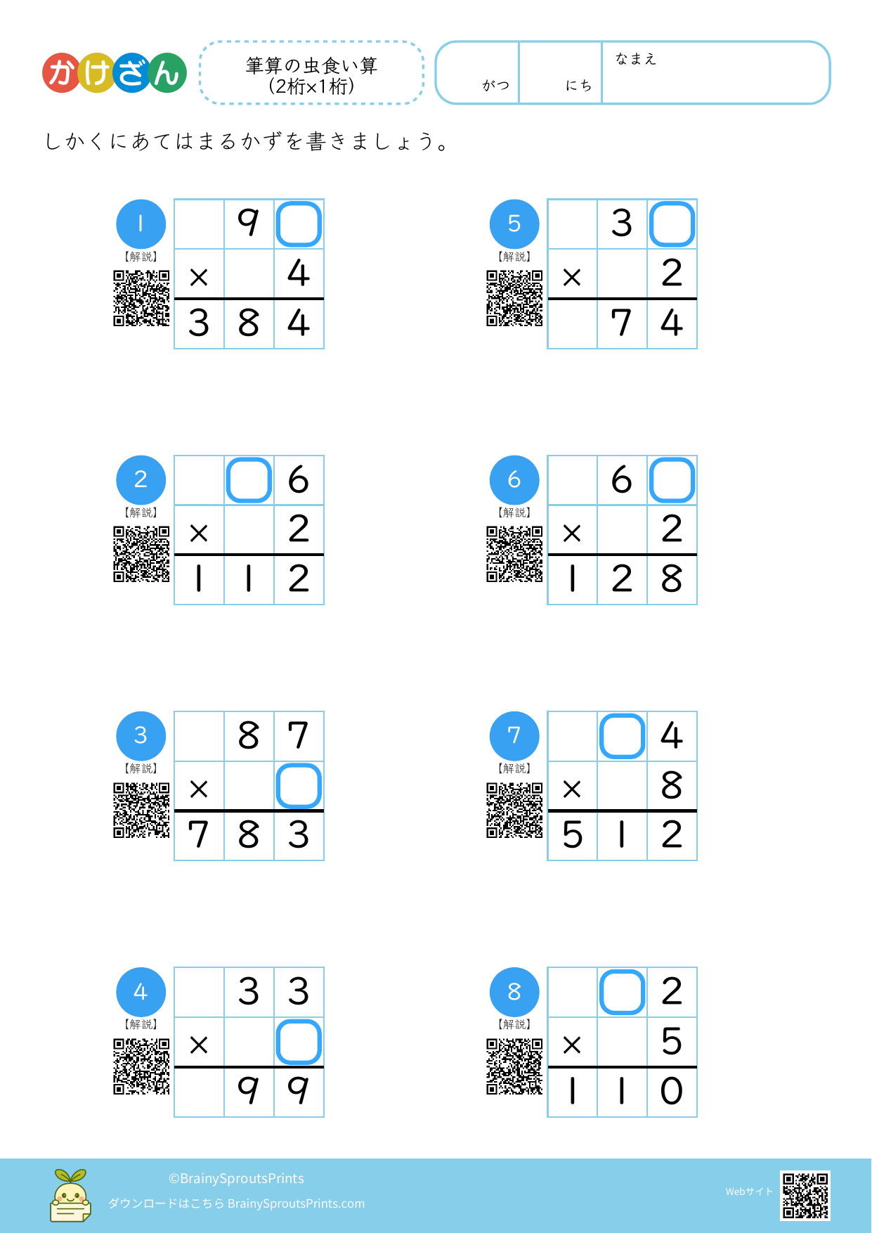 筆算の虫食い算(2桁×1桁)#3