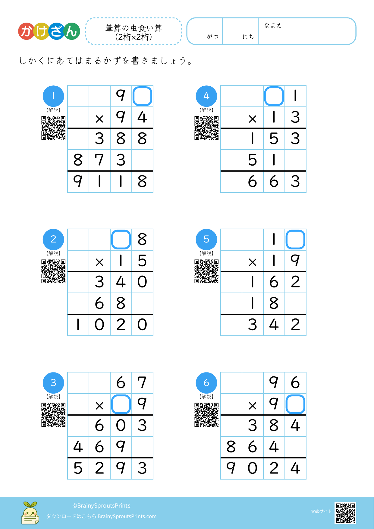 筆算の虫食い算(2桁×2桁)#2