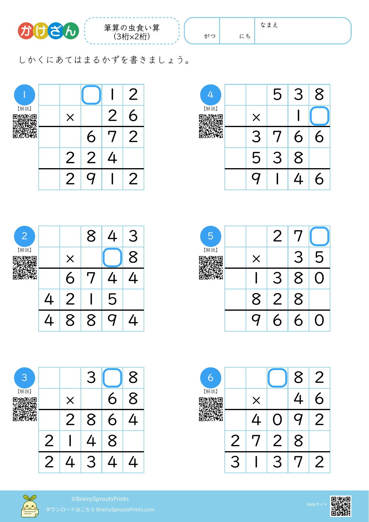 筆算の虫食い算(3桁×2桁)#5