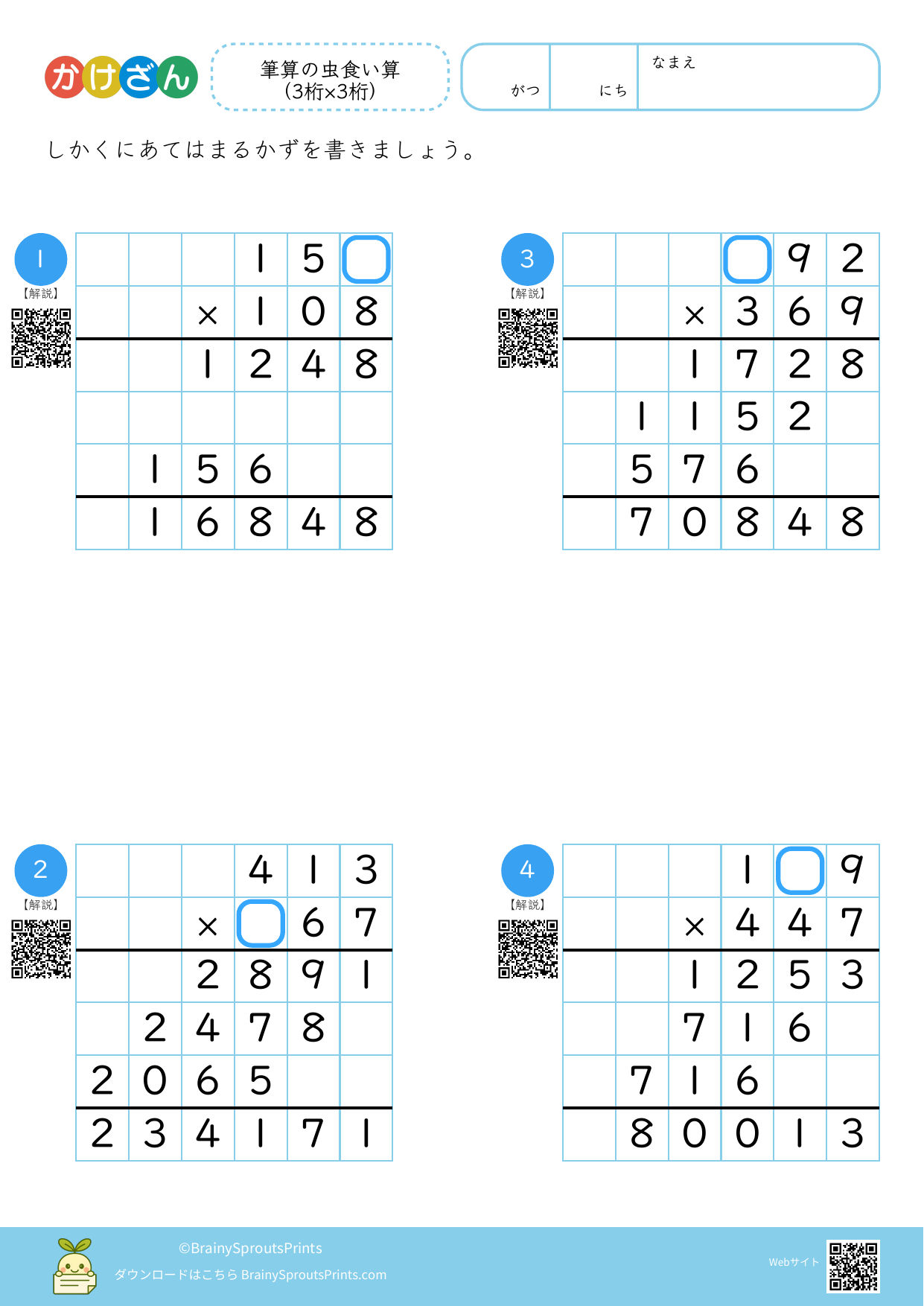 筆算の虫食い算(3桁×3桁)#1