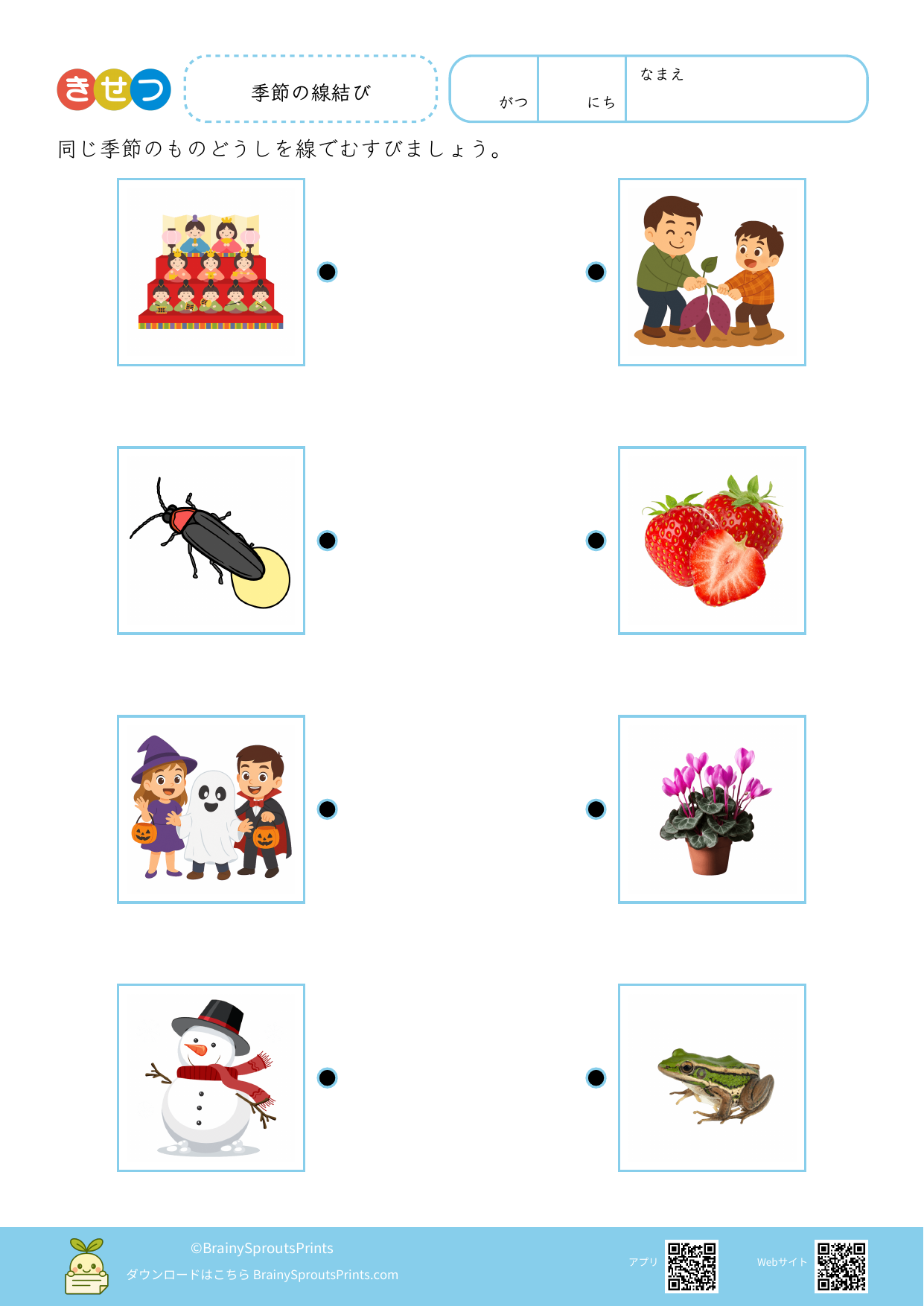 BrainySprouts Prints は、未就学児から小学生までの子どもを対象とした学習プリントを、保護者や教育者の方が家庭学習や教育現場で活用することを目的とした教育サイトです。語彙力や思考力を育てることを大切にし、日常の学習に無理なく取り入れられるシンプルな教材づくりを心がけています。