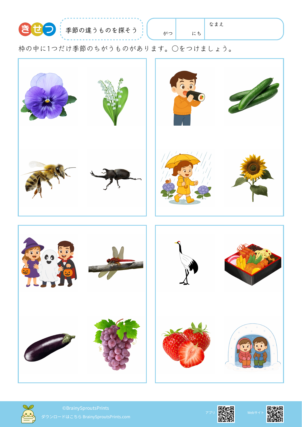 BrainySprouts Prints は、未就学児から小学生までの子どもを対象とした学習プリントを、保護者や教育者の方が家庭学習や教育現場で活用することを目的とした教育サイトです。語彙力や思考力を育てることを大切にし、日常の学習に無理なく取り入れられるシンプルな教材づくりを心がけています。