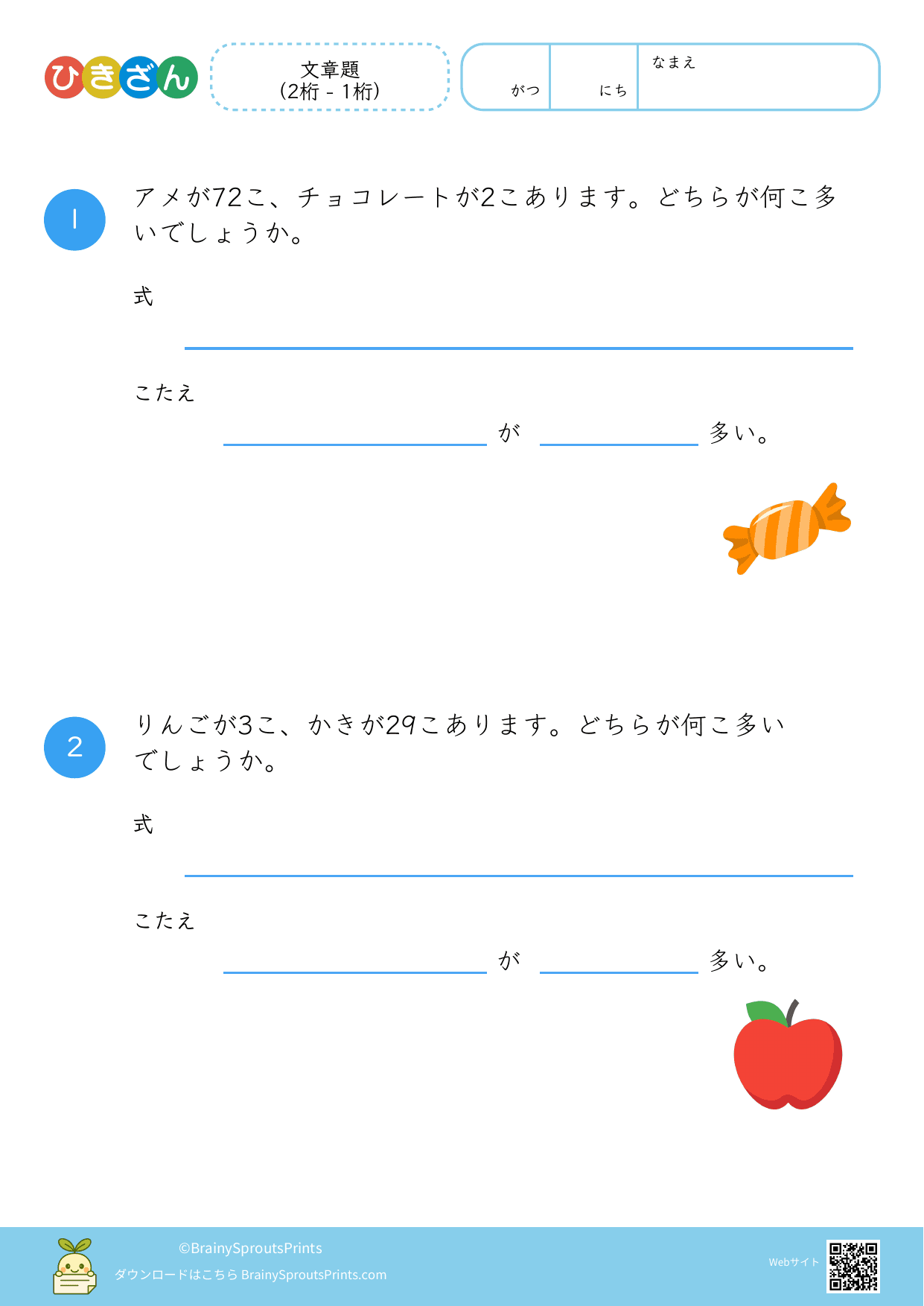 文章題(2桁 - 1桁)#9|BrainySprouts Prints