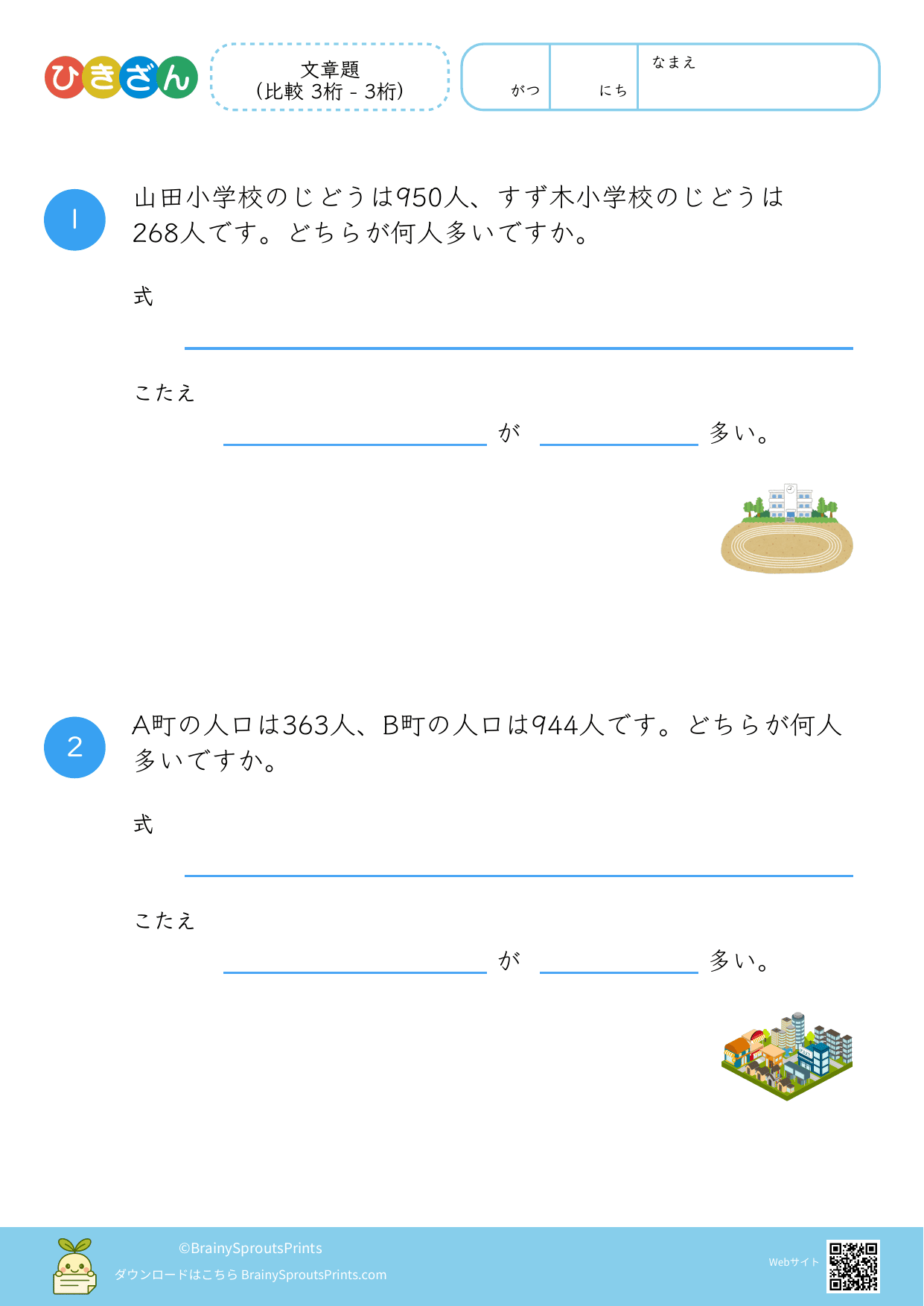 文章題(比較 3桁 - 3桁)#7