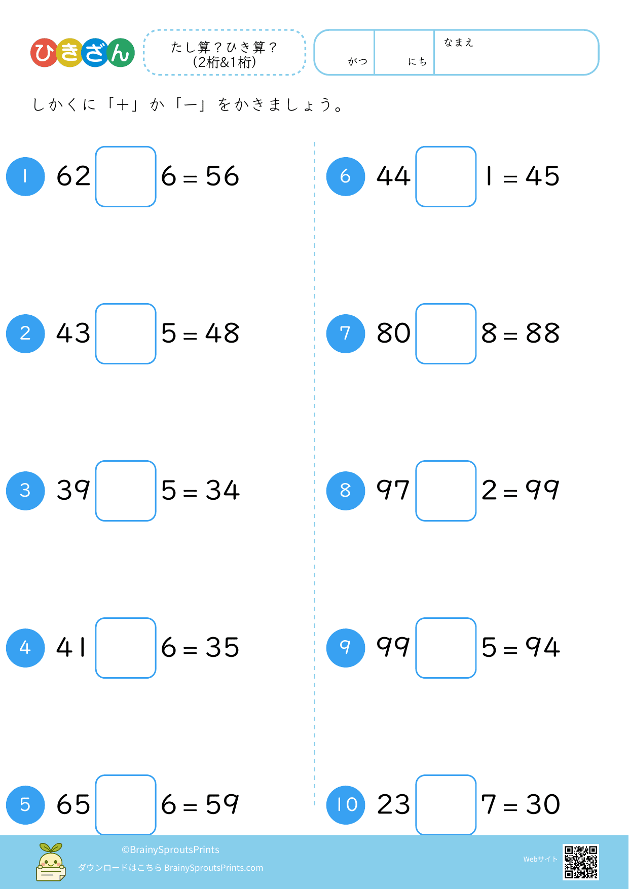 たし算?ひき算?(2桁&1桁)#1