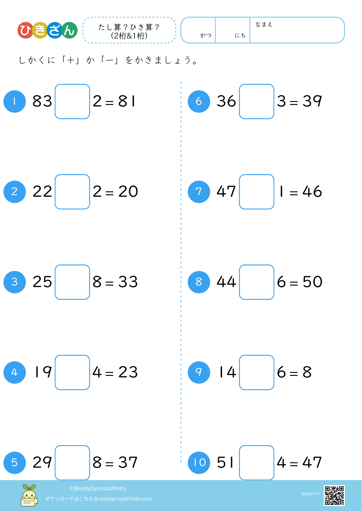 たし算?ひき算?(2桁&1桁)#3
