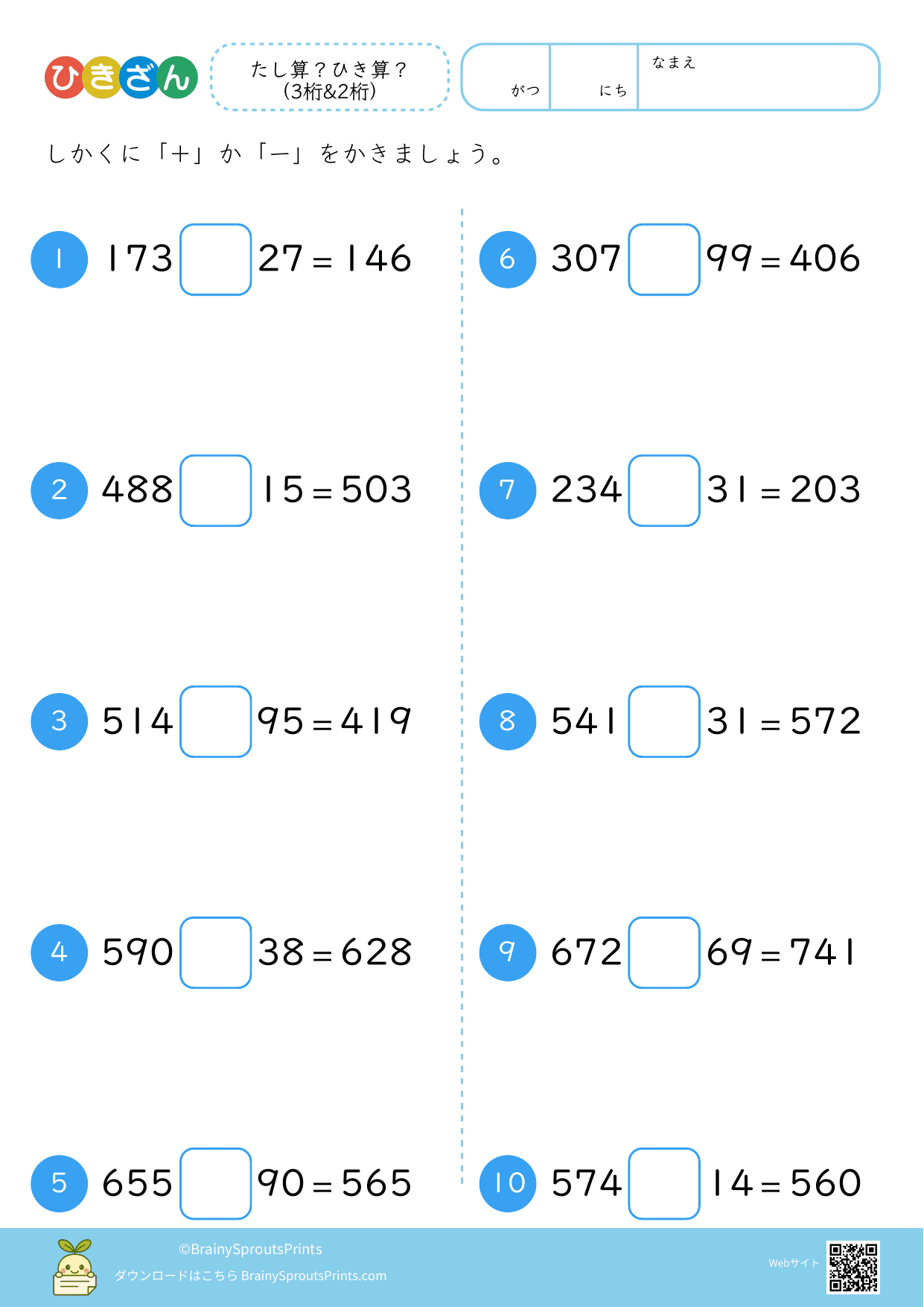 たし算?ひき算? (3桁&2桁)#5