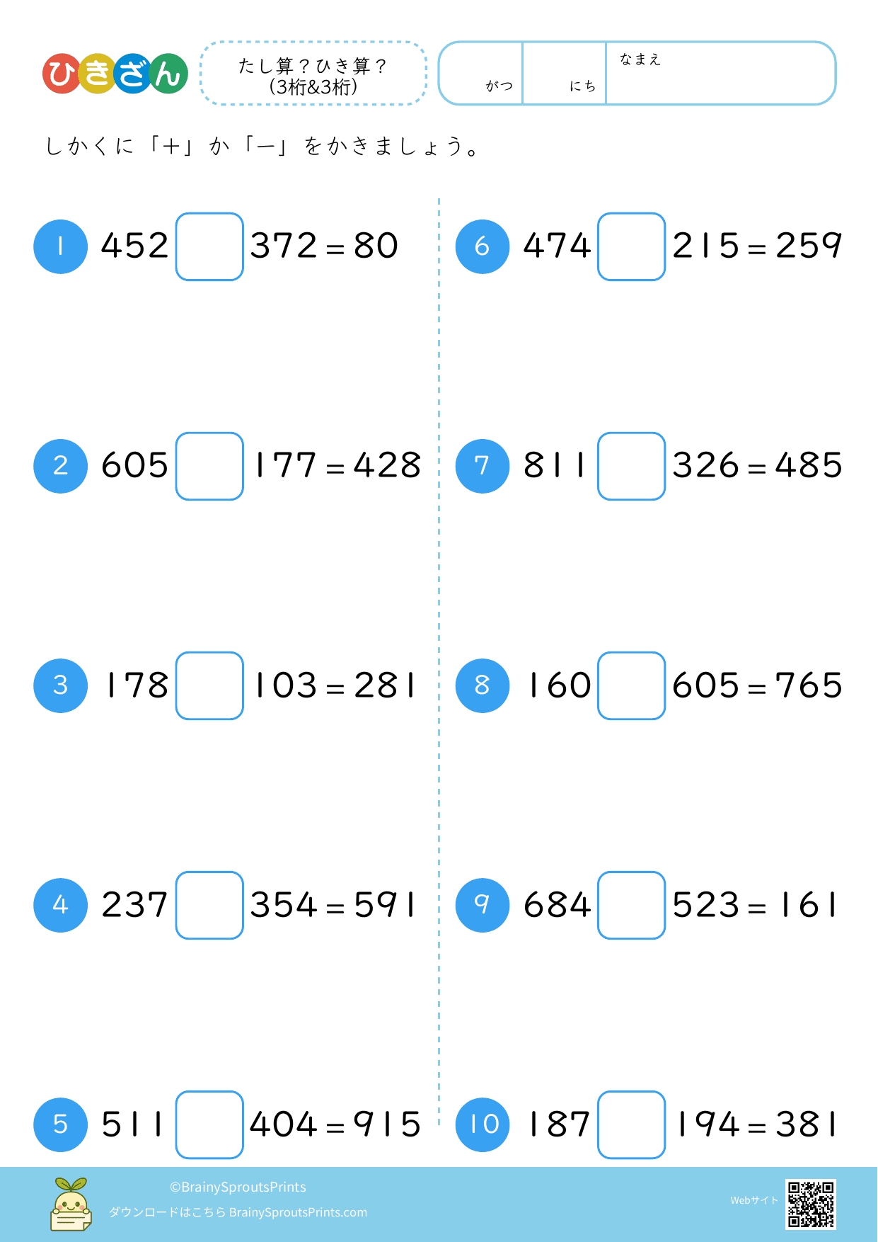 たし算?ひき算? (3桁&3桁)#4