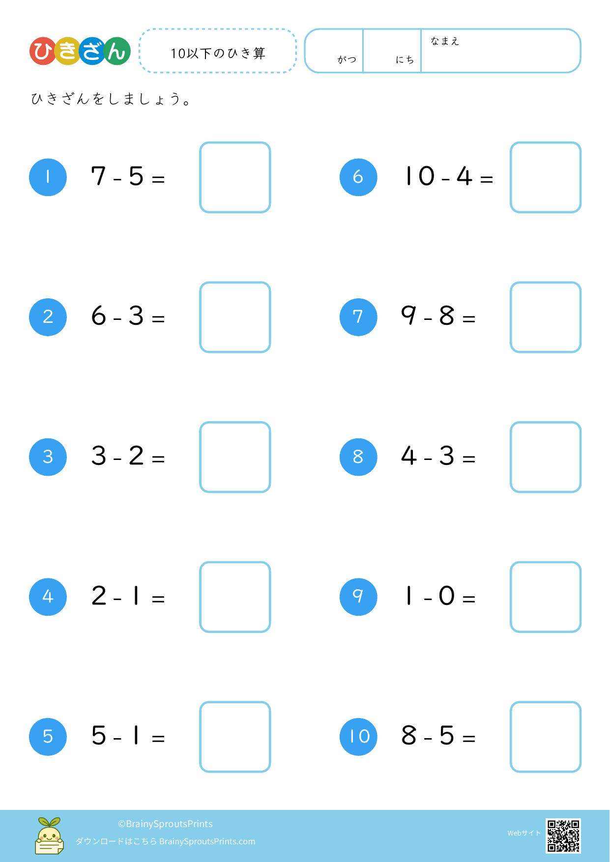 10以下のひき算 #2