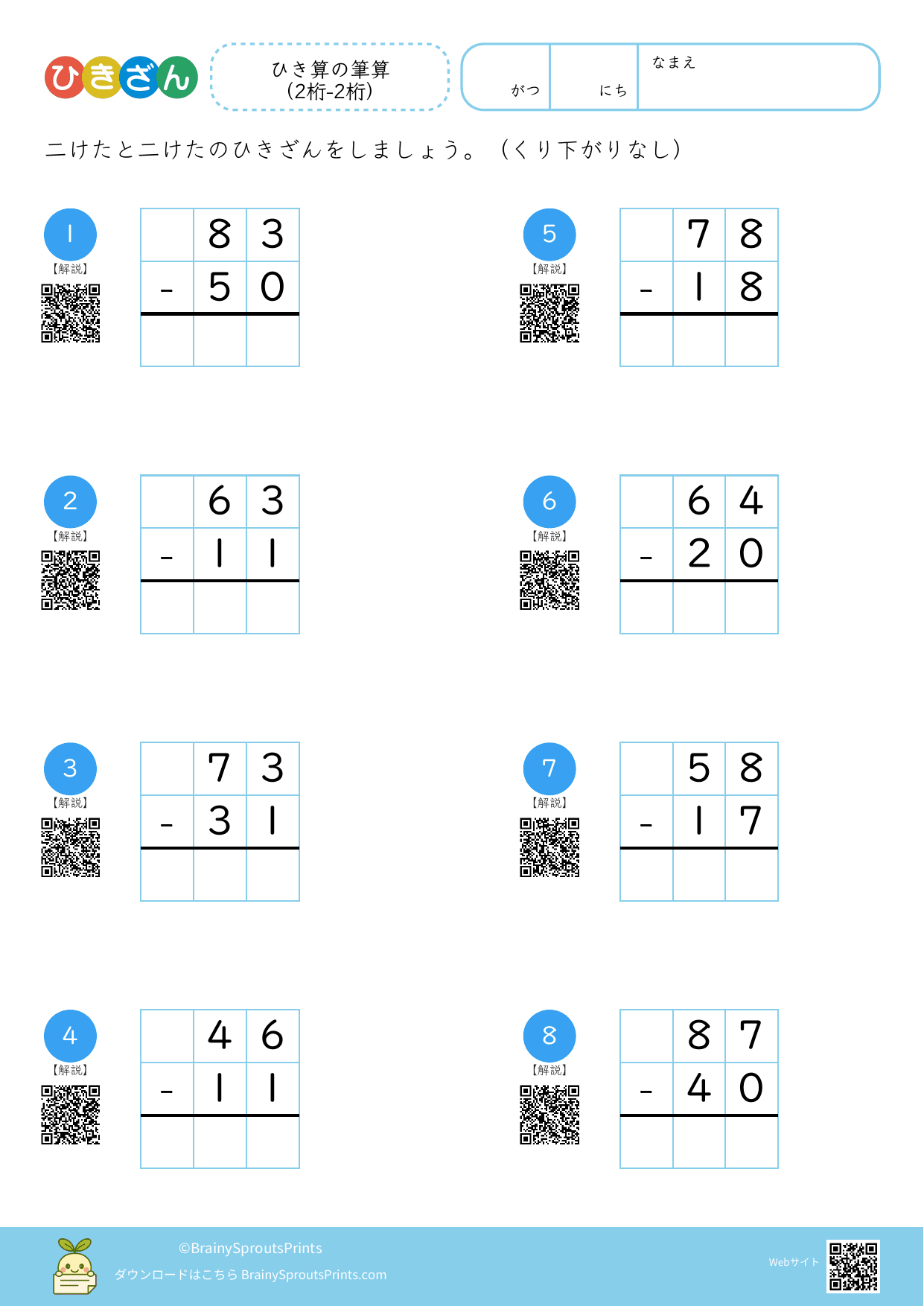 ひき算の筆算 (2桁-2桁)#3