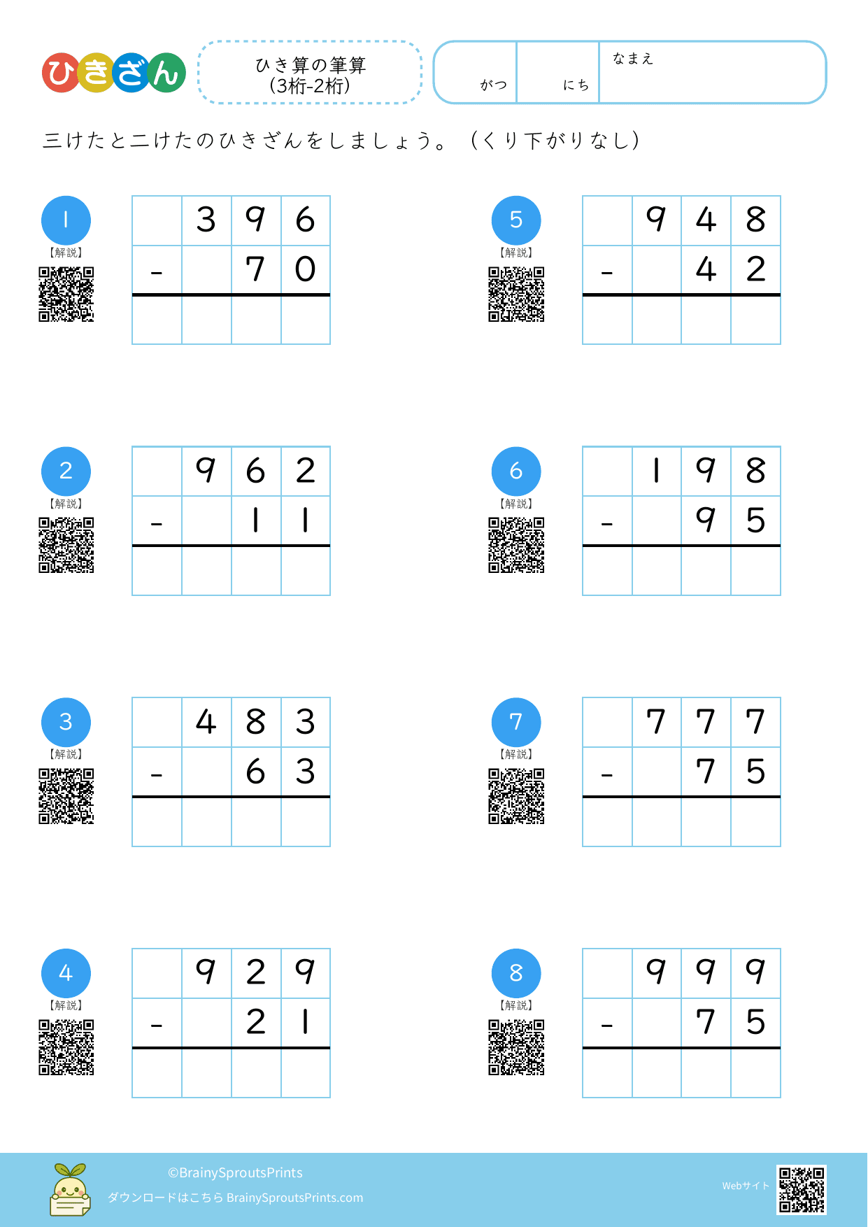 ひき算の筆算 (3桁-2桁)#3