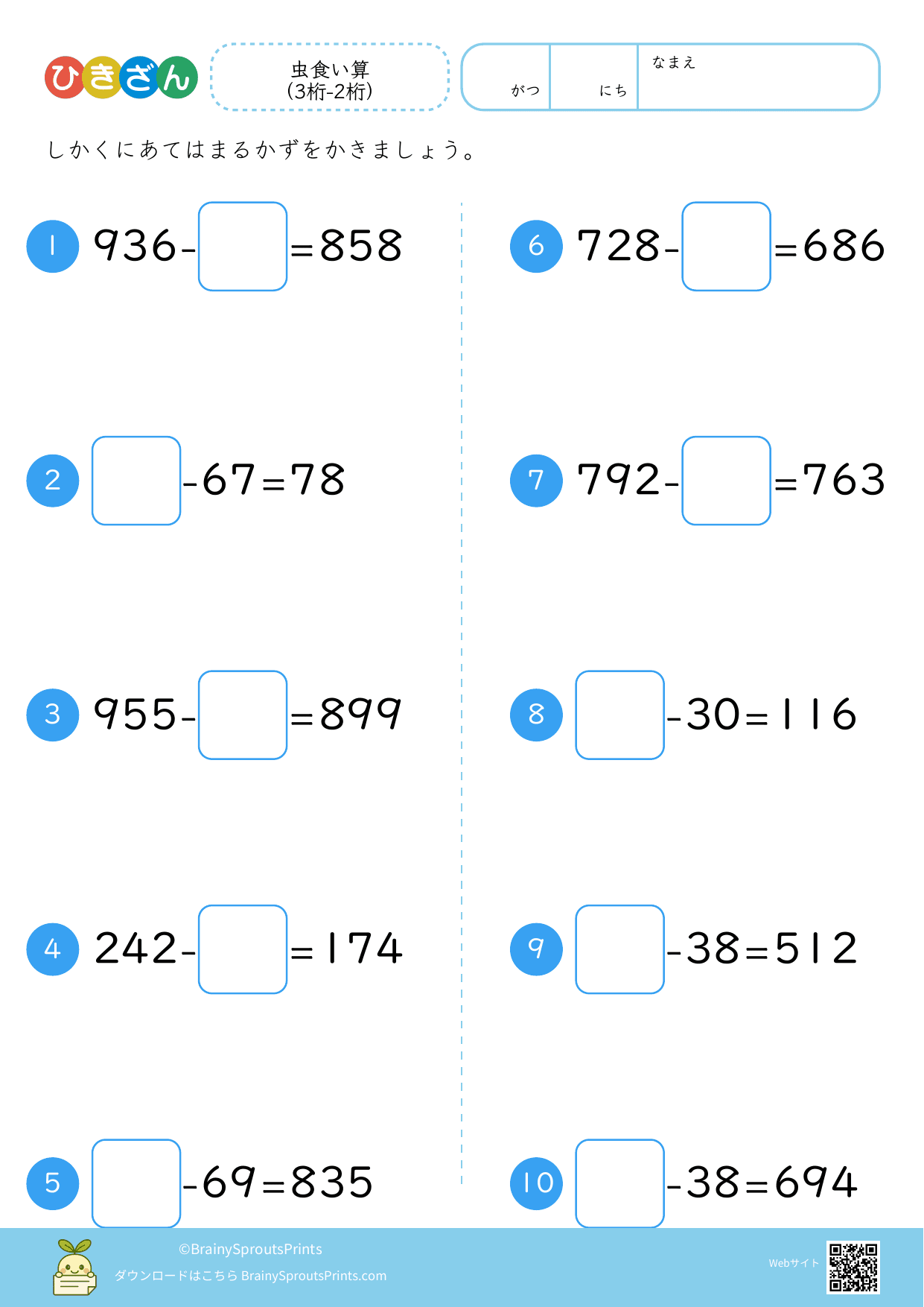 計算の答えを出すことだけでなく、数をどう捉えたか、どの手順で進めたかを確かめやすいプリントです。短い時間でも考え方を崩さずに反復すると、計算が安定しやすくなります。 速さよりも、迷わず手順を追えるか、途中で何をしているかを言葉にできるかを見ながら使うと、次の単元にもつながりやすくなります。