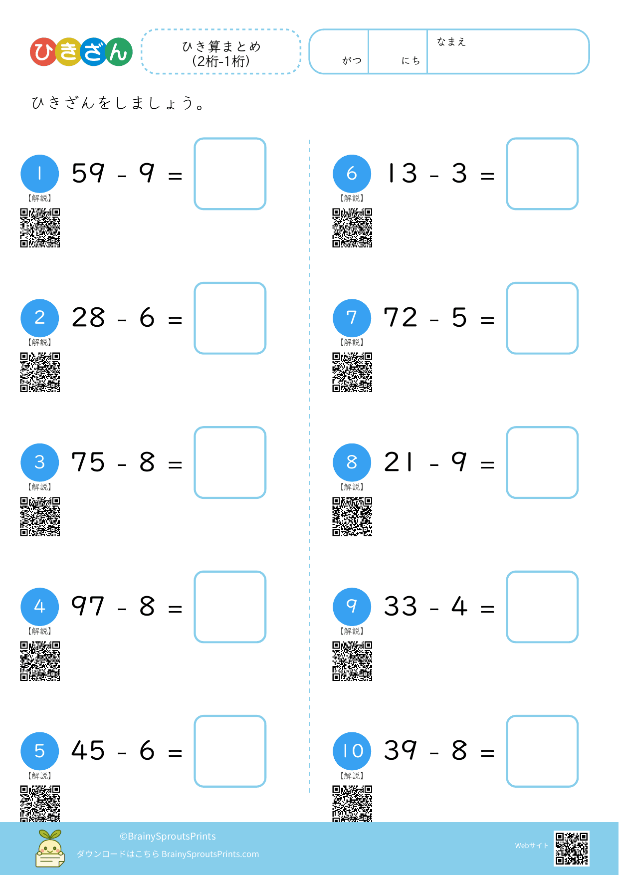 ひき算まとめ (2桁-1桁)#3