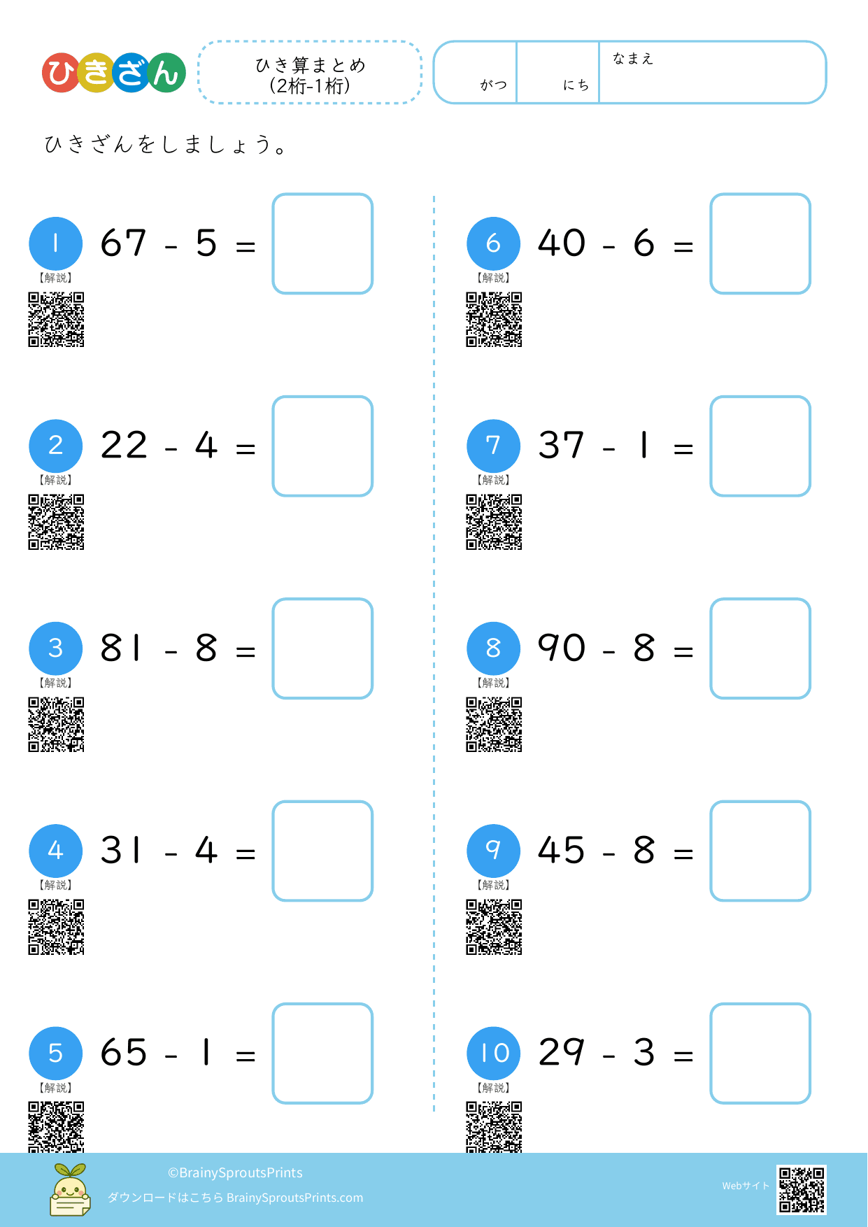 ひき算まとめ (2桁-1桁)#5
